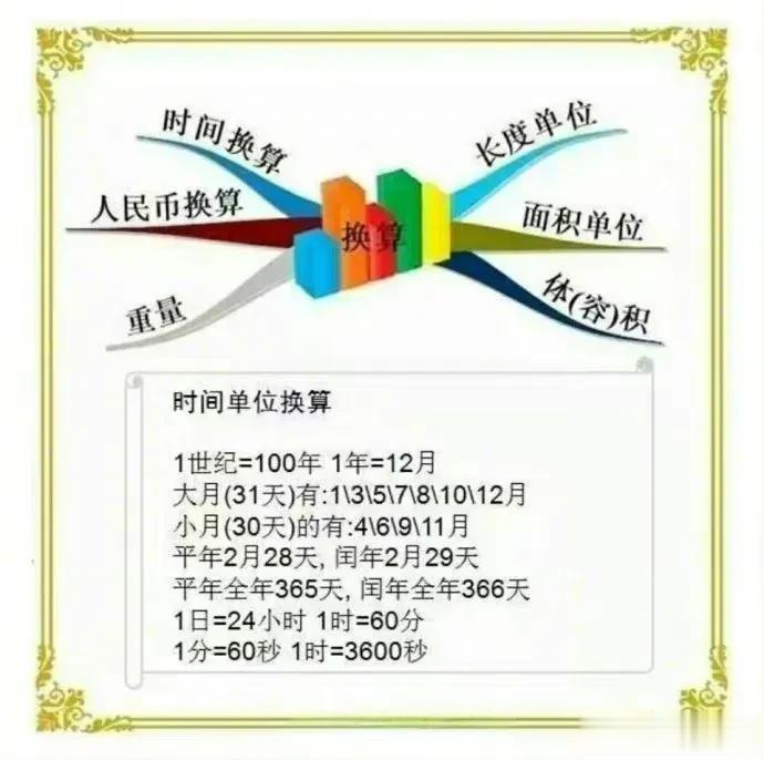小学数学思维导图汇总:时间换算,长度单位,人民币换算,面积单位,重量,体(容)积,哇!总结到位,一目了然,家有孩子的,收藏起来!