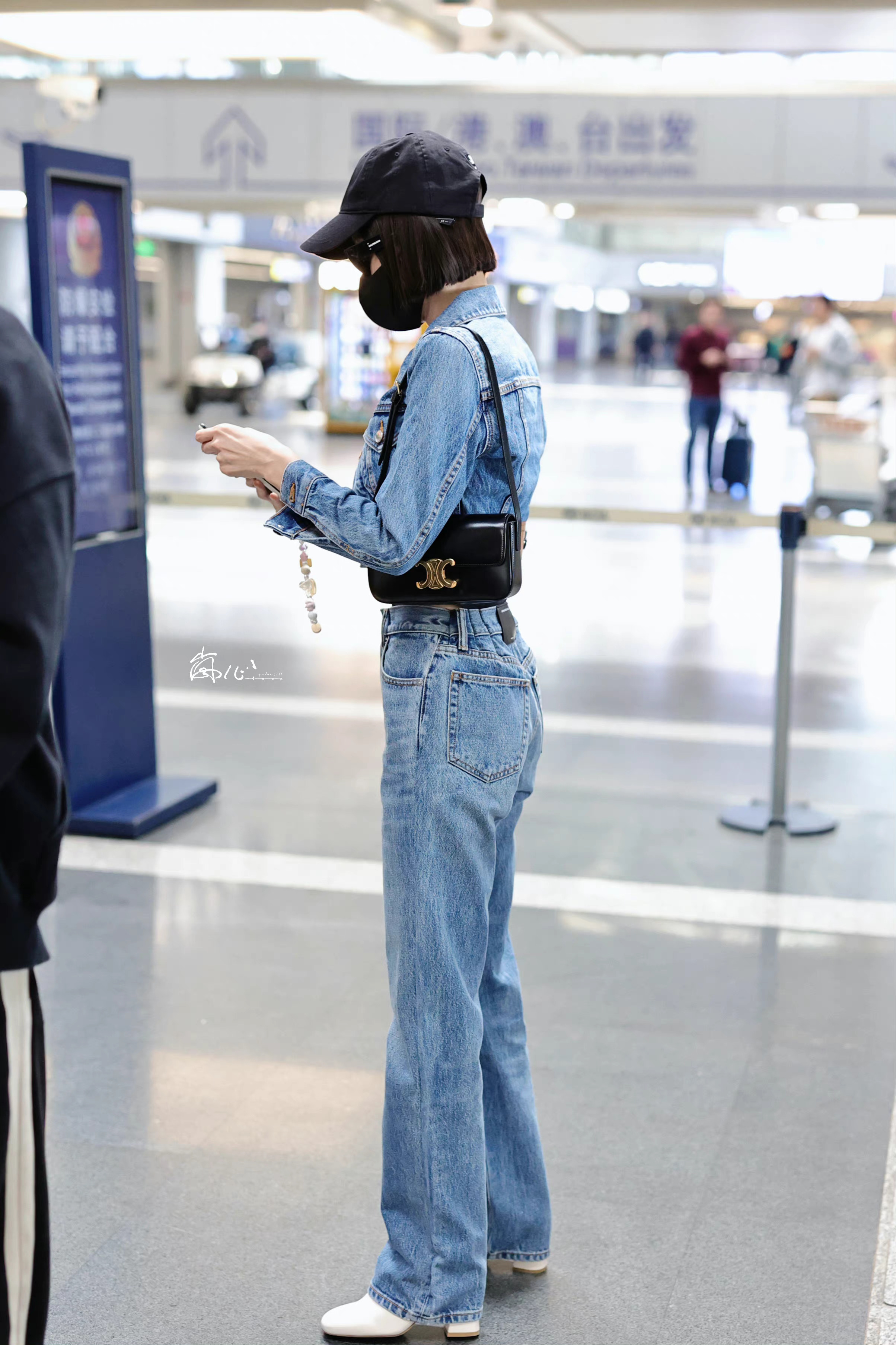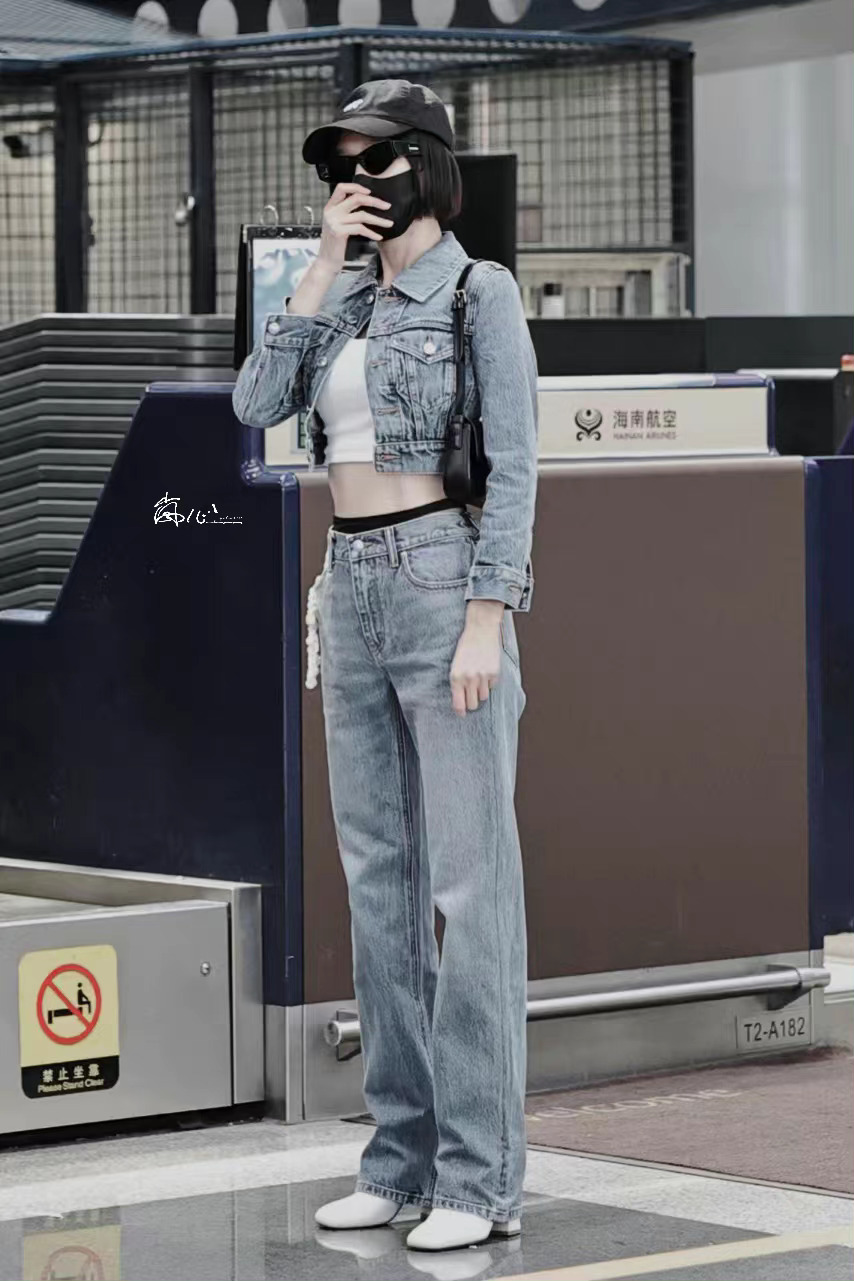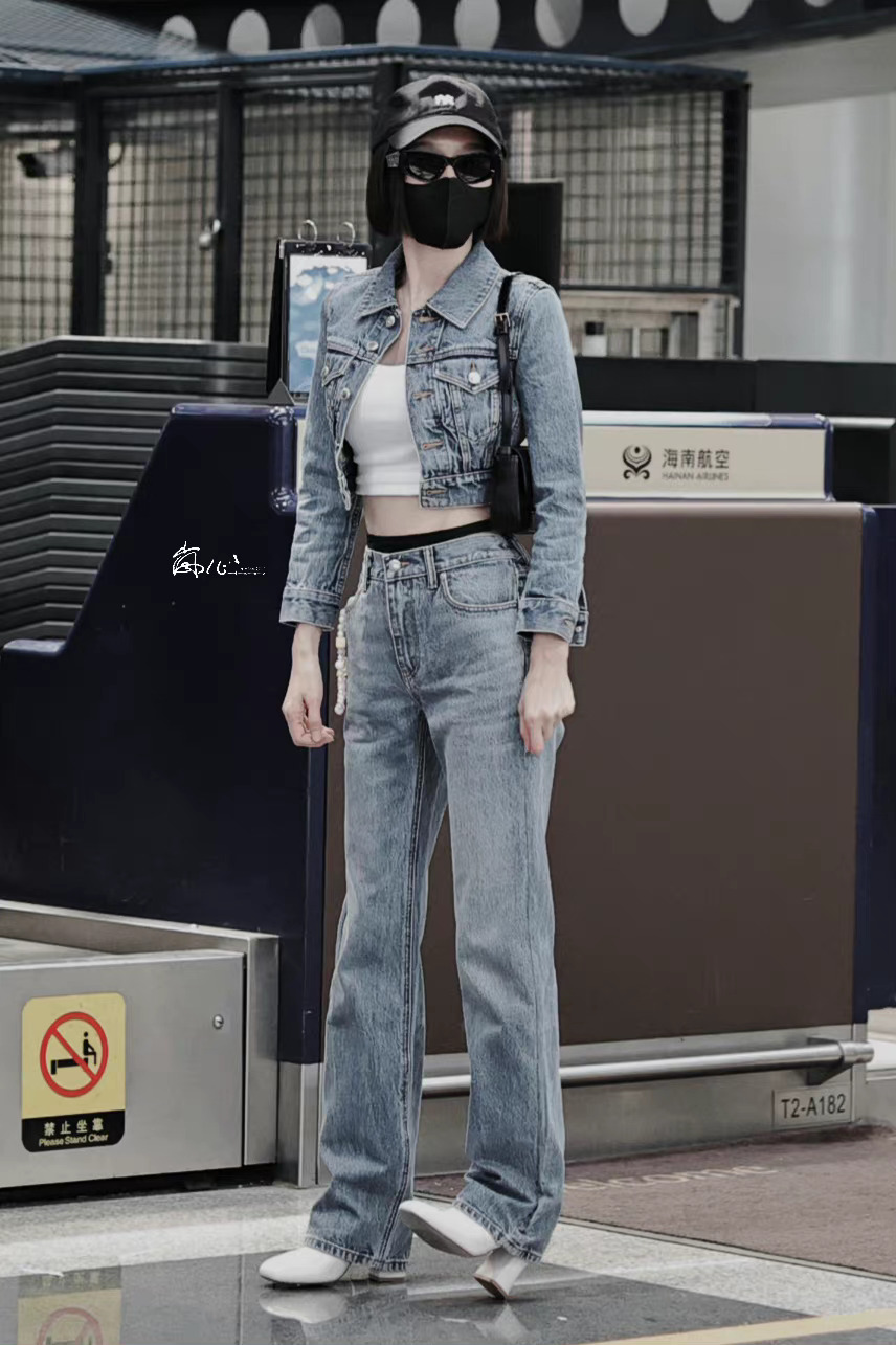 秦岚今日机场出行穿搭,早春季节的牛仔套装!再次惊叹姐姐的好身材!