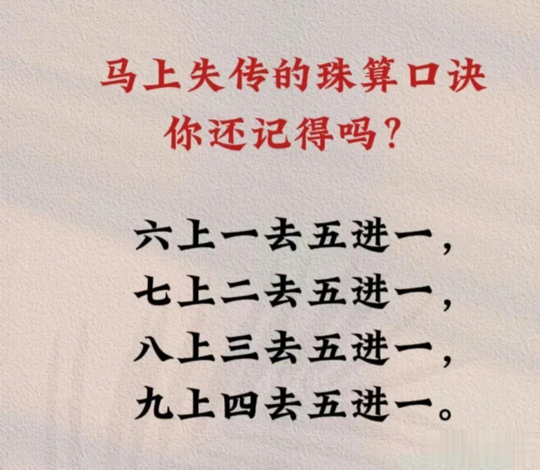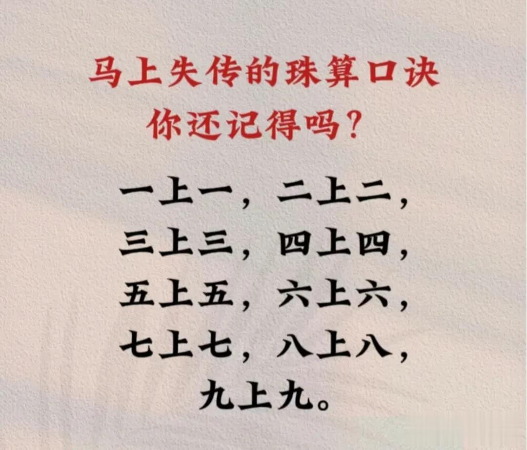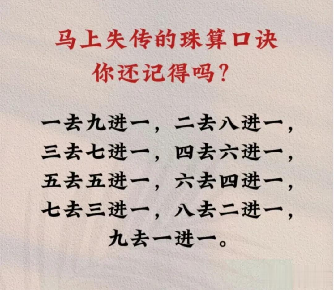 即将失传的算盘口诀九九归一 算盘是中国古老的计算工具,它可以用来