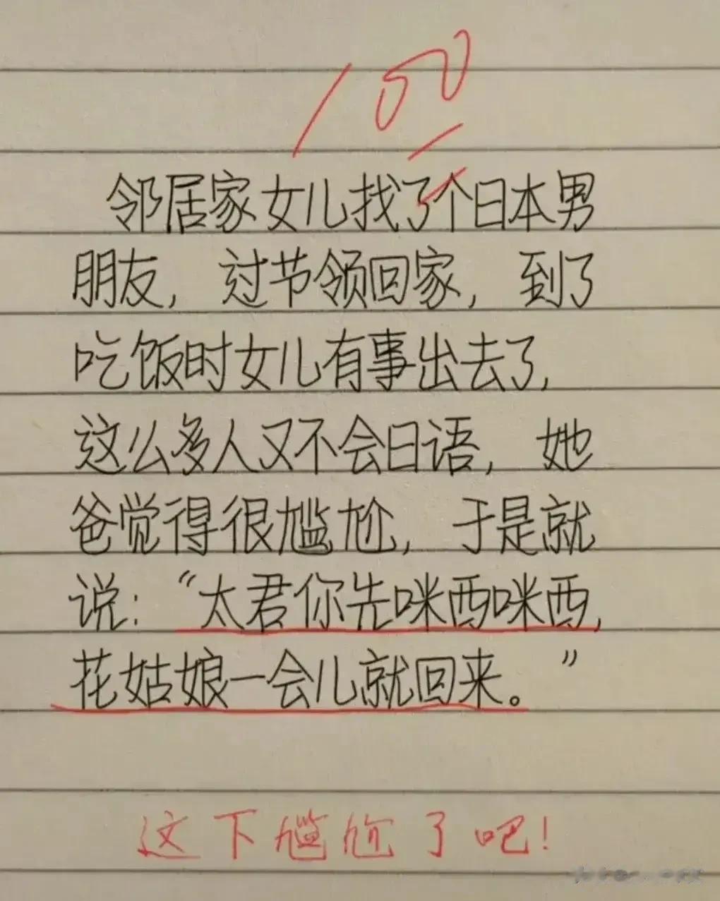 哈哈……笑服了,笑服了!我的天呐,小两口博士生吵架,男的,你开口就是百家姓去掉赵字,女的,你还想吃天鹅肉?男的接着,你就是个南北,女的,你无非是个玉上无瑕,公而忘私,骂得都听不懂了,天呐!没文化,真可怕,笑到了肚子疼,奇才啊!幽默搞笑不说,还富含哲理,这想象力也是没谁了,脑洞大开啊。逗比一个,妥妥的,我谁都不服,就服你!