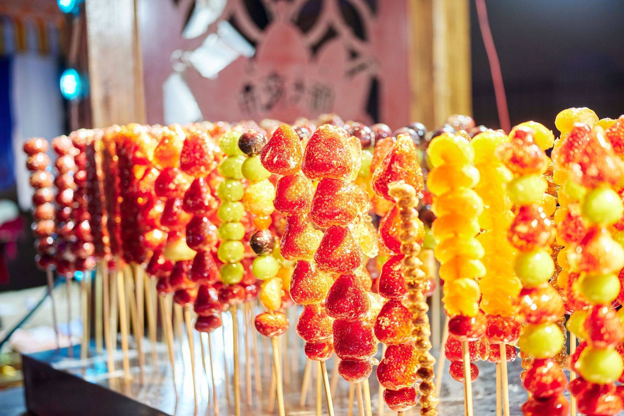 天刚擦黑,夜市的灯火就闪烁起来。统一设计过的灯光带着艺术感,带着几分浪漫,从单纯的照明变成了可以上镜打卡的装饰元素。各色食物和美食小吃在灯光的映衬下都变得更加鲜美可口起来。