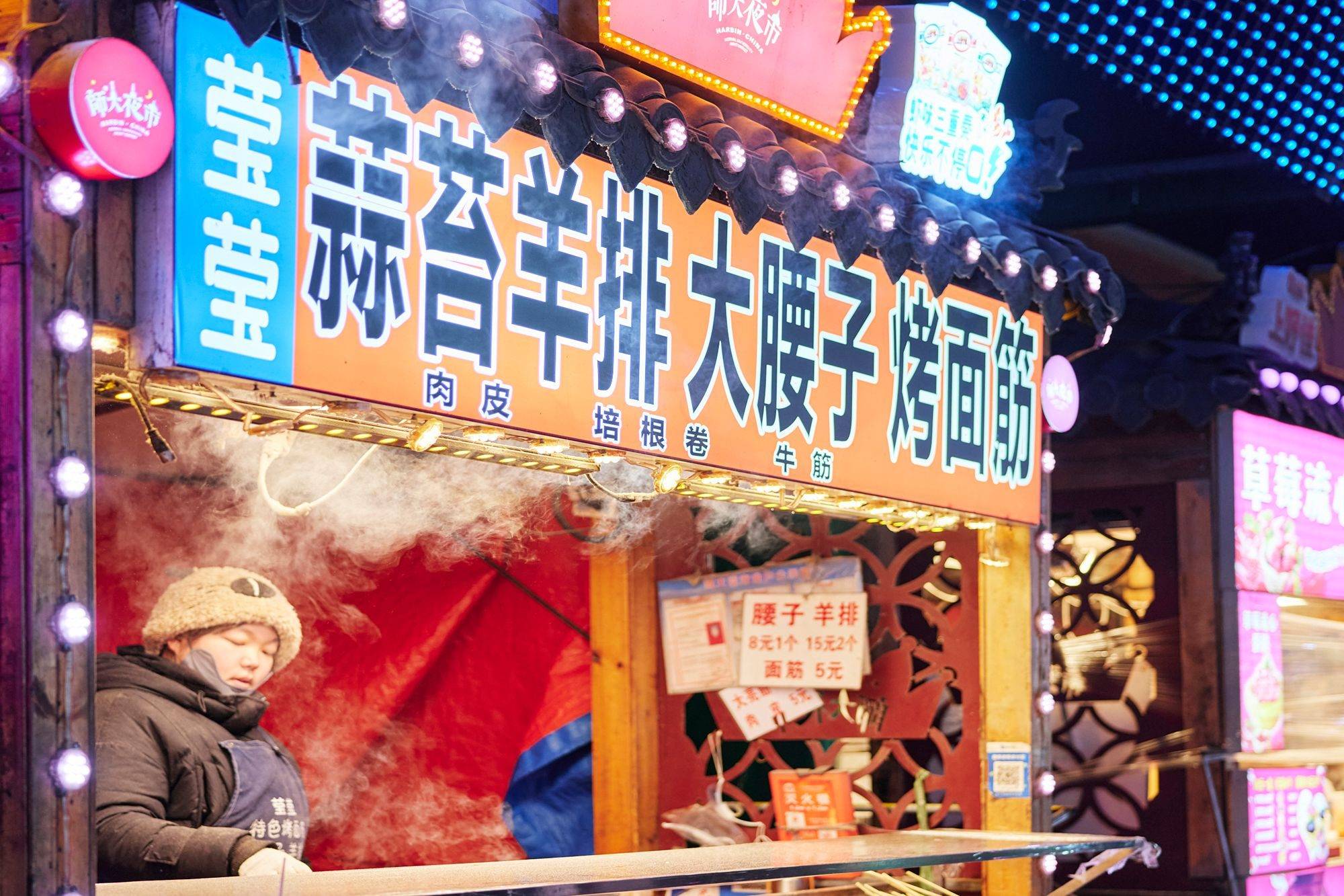 这里是哈尔滨的“深夜食堂”,是这座城市网红夜市的担当,无论哪个季节来哈尔滨玩,一定要在晚上逛一趟师大夜市,别犹豫,一头扎进腾腾烟火气。