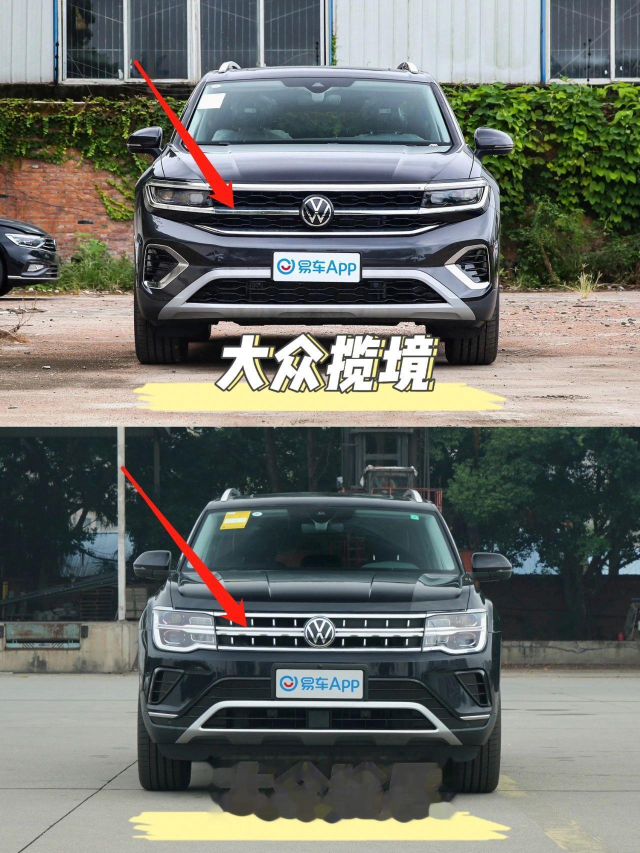 大众同价位的揽镜和途昂有什么区别? 在国内,30到40万区间的中大型SUV有着非常广阔的中产阶级消费群体,各大车企都在这一细分领域齐发力,其中,上汽大众带来了途昂,而一汽大众则带来了揽镜,这两兄弟都是SUV中的大块头,今天我们就拿它俩来比比,看看它们之间有什么区别? 前脸中网的不同 揽境的前脸中网上中央只有一根镀铬饰条。 途昂的前脸中网上中央有两根镀铬饰条。 车尾长度的不同 揽境车尾后备箱能够明显看出长一截,车身线条圆润。 途昂的车尾较短,车身的线条更为直硬。 发动机的不同 揽境搭载2.0L/2.5L的涡轮增压发动机,最大马力299Ps,最大扭矩高达500N ·m。 途昂搭载2.0L的涡轮增压发动机,最大马力186Ps,最大扭矩350N·m。 揽境和途昂之间虽成为“同门兄弟”,但其实差异化的定位还是存在的,揽境更注重空间上的舒适和动力上的输出,而途昂则外形气场强,配置性价比更高,其实对市场的划分也比较明确,如果是你,你会更中意那一款呢?