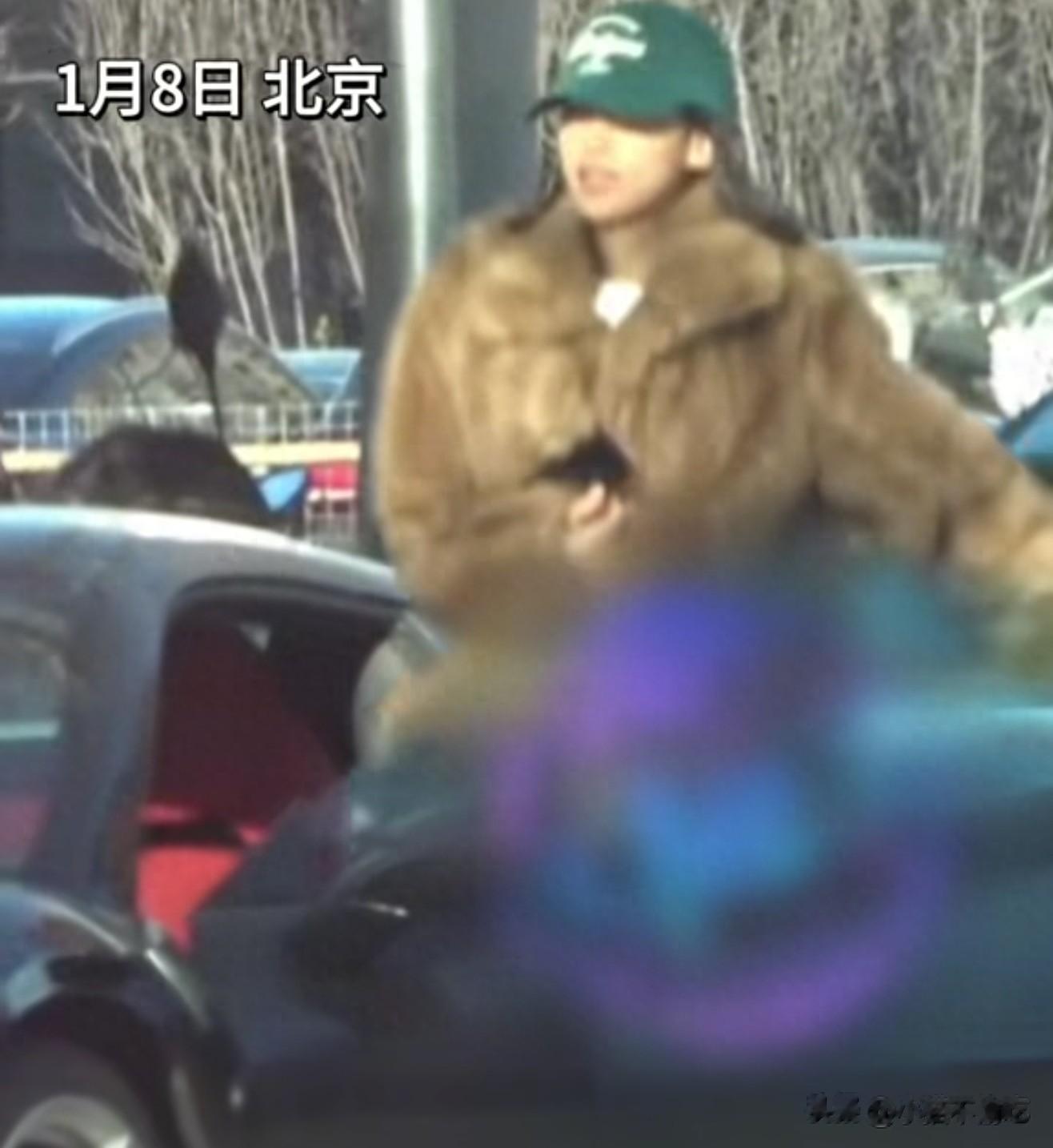 画面里,她穿着貂皮大衣、戴着绿色帽子,走到那台黑色法拉利F8旁的姿态很是潇洒。