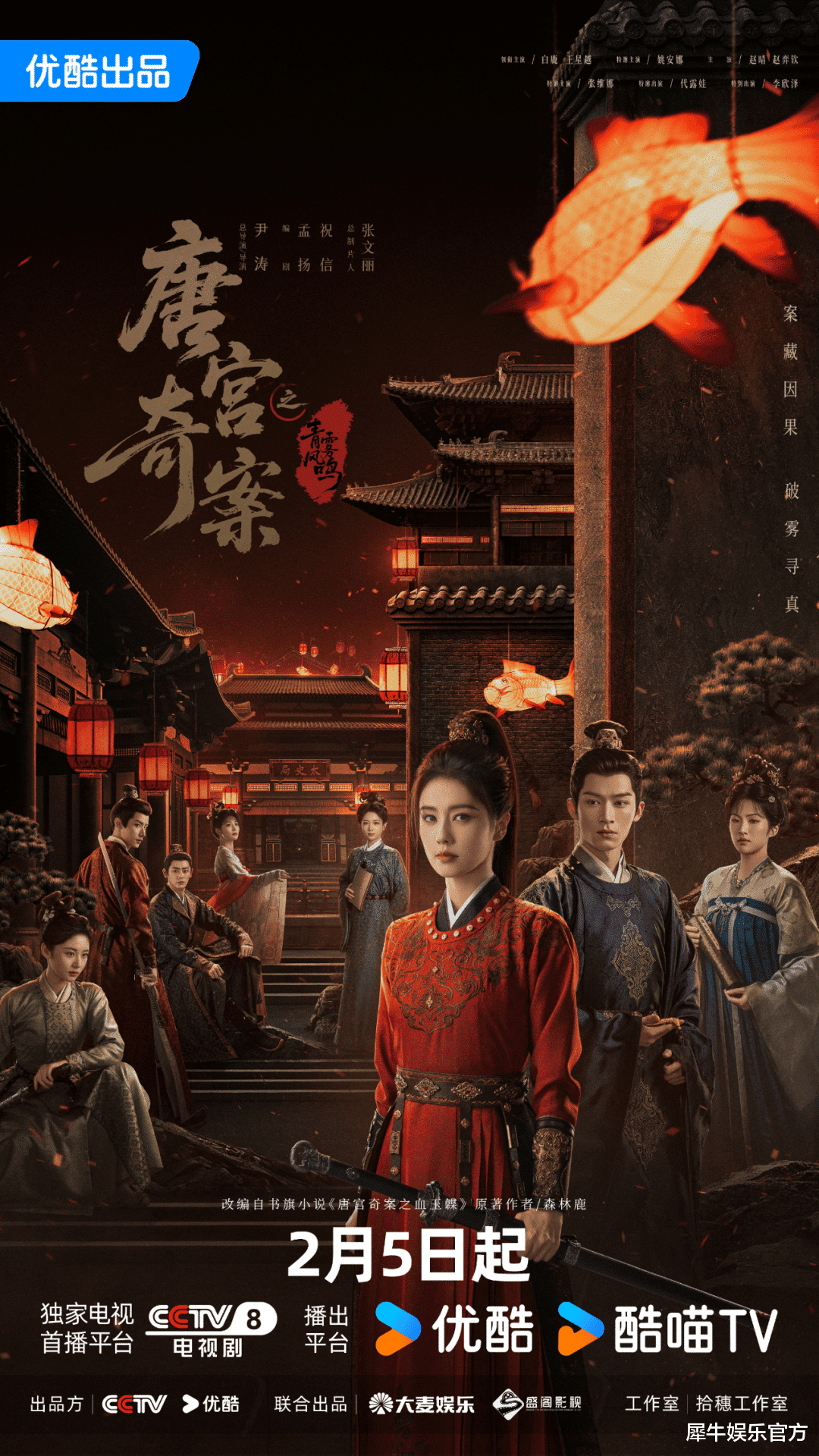 该剧改编自森林鹿的小说《唐宫奇案之血玉韘》,主打大女主硬核探案与中式恐怖相结合,白鹿颠覆性塑造的“疯批女官”形象是核心卖点,女性全程主导破案打破“男主导女辅助”套路,单元案件将聚焦新娘殉葬陋习、公主离奇身亡等宫闱秘史和诡异奇案,女性群像的觉醒有望成为话题热点。