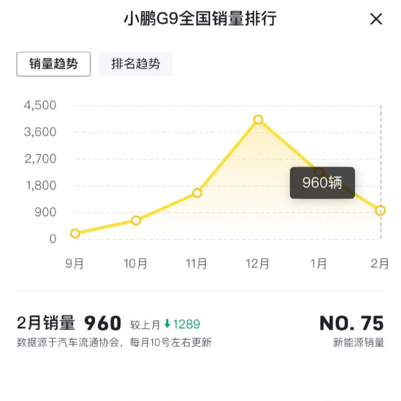 会降价吗?谈谈小鹏G9价格与销量 首先说结论,小鹏会在2023年4月以后,迎来销量的拐点。但小鹏G9在改款前,销量最高也就2000台,不会降价。或者换句话说,小鹏做好了G9月销1000-2000台的准备。 来说说原因 一 定位问题。小鹏G9的客户群体八成以上是35往上的不差钱男性客户,并且不是第一辆车。这与小鹏前期P7积累的意向客户冲突是很大的。大部分前期积累的30岁以下的铁粉以及辐射人群,被隔绝在外。所以就算降个两万,效果会有,但是非常小。 二 G9的从产品力上来看,定价已经很低了,再降价完全没必要。小鹏曾经因为头贴上800V碳化硅,被供应商以及整体适配测试进度坑的不轻,导致2021年是11月广州车展发布后一直拖到2022年9月才发布。后续又因为要重点宣传小鹏前总裁夏珩主导开发的5D音乐座舱,导致宣传使不上力,卖点完全讲不清楚。 但是,上述问题与小鹏的产品力无关。G9采用产品力定价法是完全没问题的。并且G9作为小鹏旗舰,承载的是小鹏品牌向上以及赋能小鹏技术价值的使命,降价的话对G9车主和小鹏品牌都将会是巨大伤害。G9车主是能够在蔚来,理想间反复横跳的重要角色,小鹏供着还来不及。 三 G9降价,P7i和G6会变得难卖(价格锚定原理)。这是得不偿失的。 四 G9有两个大五座兄弟,蔚来ES7和阿维塔11,他们的销量其实是半斤八两。(图2图3图4)但是评价蔚来和阿维塔销量低的声音就很少,评价小鹏的声音就很多,这真的是坏事吗?不一定!从营销的角度来说,市场声量是一个非常重要的衡量指标,无论是正面还是负面,至少小鹏G9的市场声量是足够的。市场声量很大程度上会转化为对小鹏的关注度,甚至好感度,为小鹏后续车型蓄能。 五 G9 的XNGP和4C超充目前刚刚落地或者交付。G9虽然销量很一般,但也在进行着推广小鹏技术实力的市场教育工作。随着车主以及媒体XNGP,4C快充体验的不断公布,以及车主对于G9口碑评价、用车体验两开花的事实,都在为小鹏积累不小的隐形势能。 而这个势能会在哪里释放,很大程度上是全村的希望小鹏G6。有相当一部分意向车主是被G9教育完后,持币等待G6的。 笔者预测一波,如果G6售价在22-28万之间,销量会破万。P7i四月交付辆破6000。