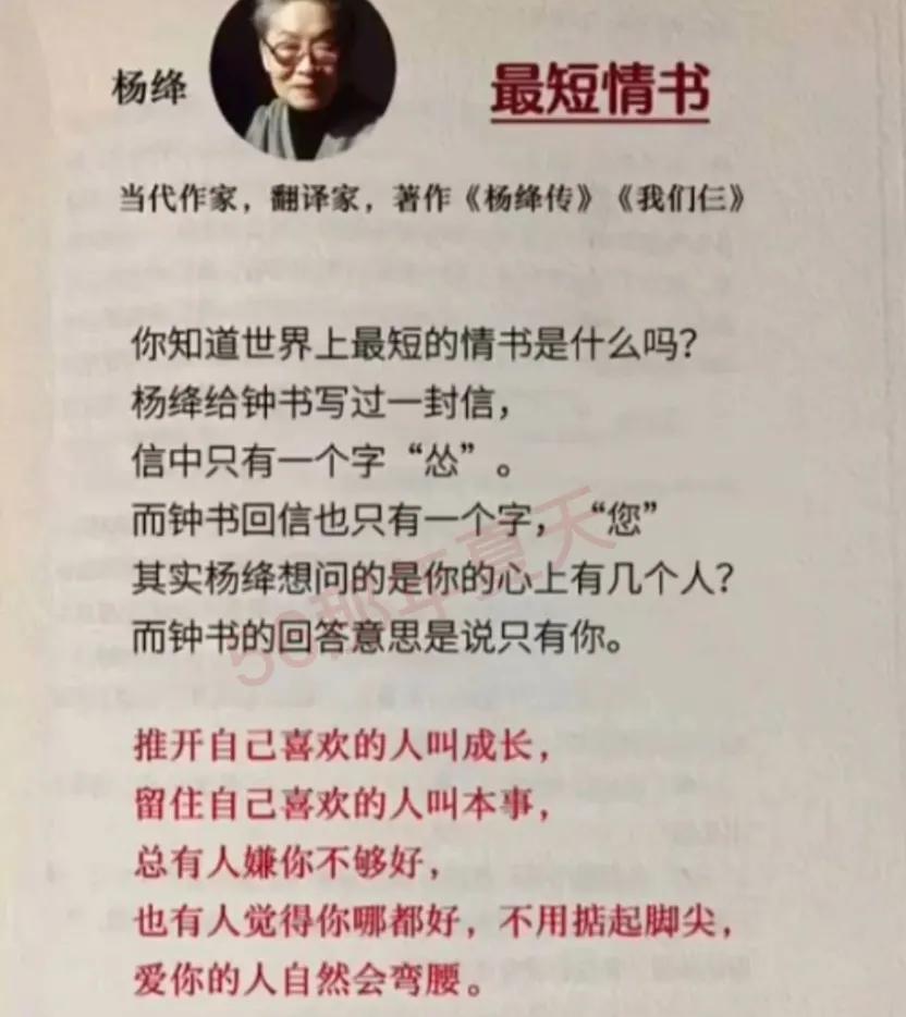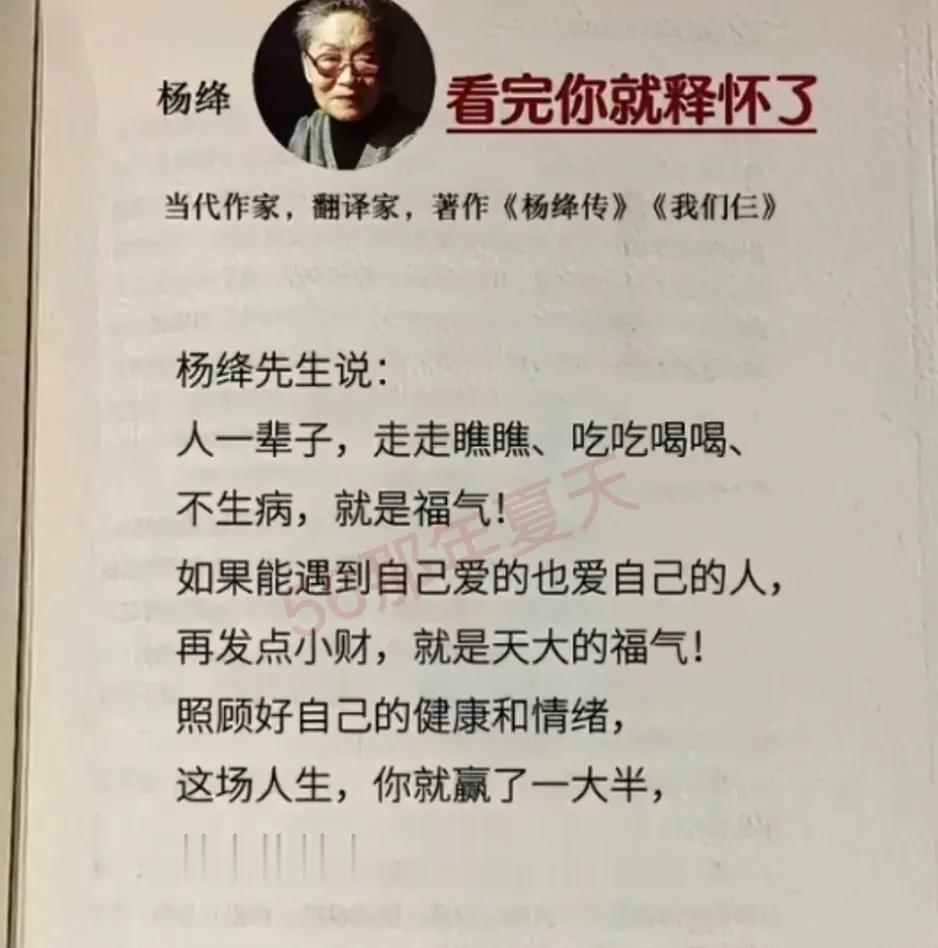 杨绛先生:真正的男女关系,既谈物质,又谈性…