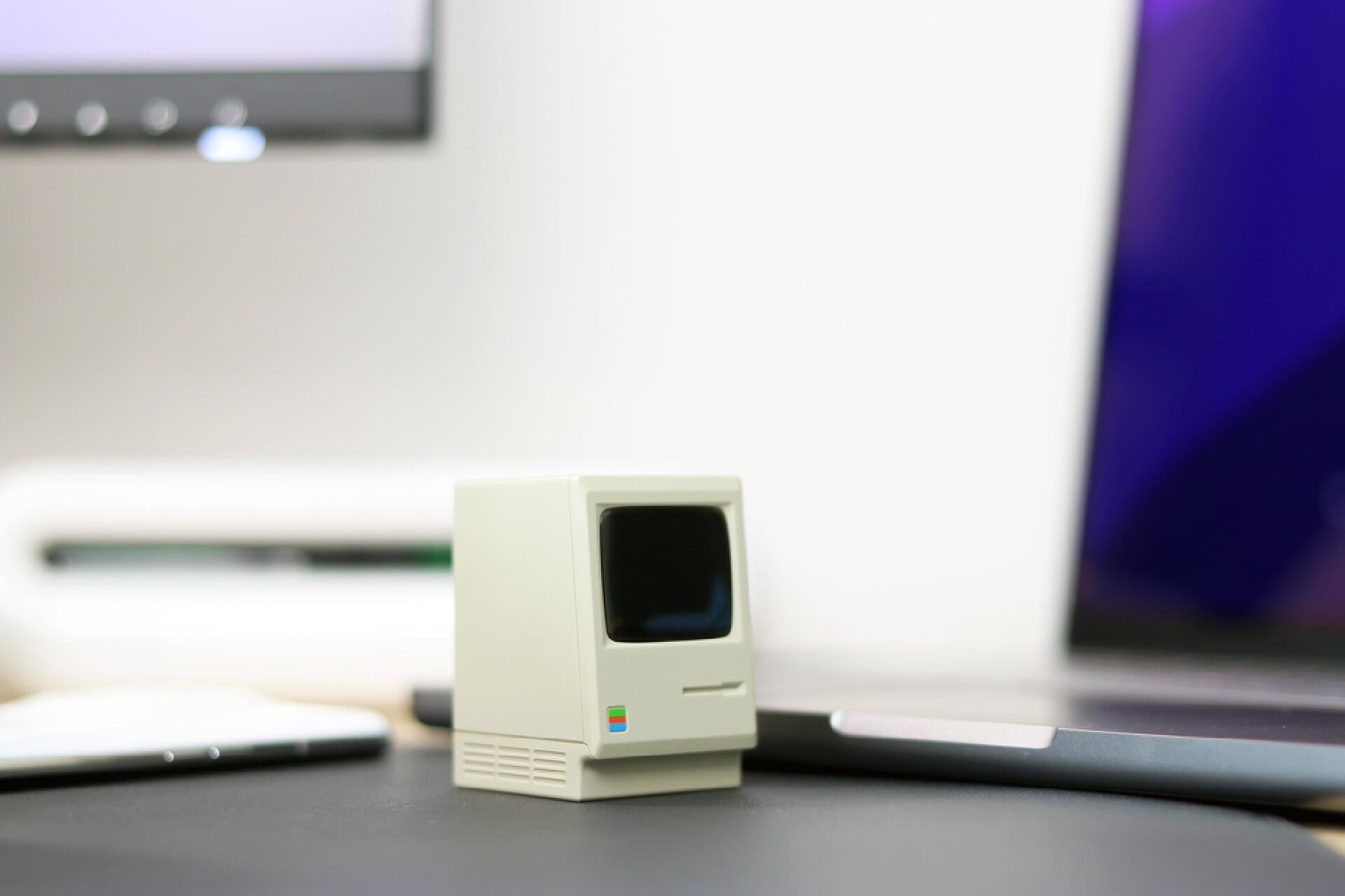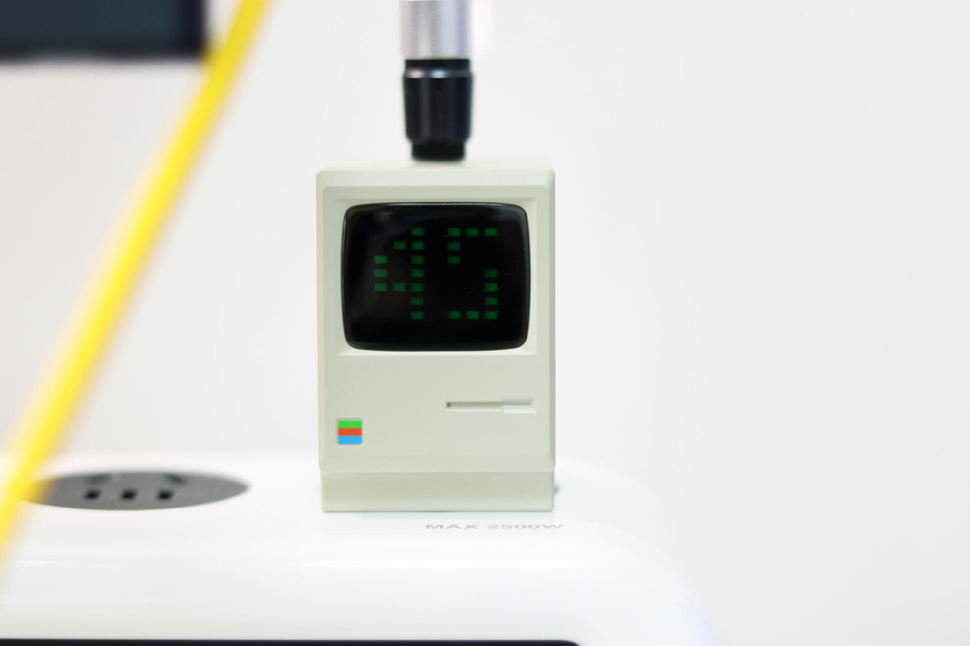 外观上保留了经典的麦金塔电脑的设计,但是这块屏幕使用了「点点屏」,闪极在其中加入了经典的数字雨动画(图9是动图),点亮的时候,让我感觉进入了《黑客帝国》的世界。另外,充电过程中,屏幕会显示当前的充电功率,这让屏幕可用性得到大幅度提升。而且屏幕亮度控制得很合理,即使是晚上也不会成为光污染影响休息。