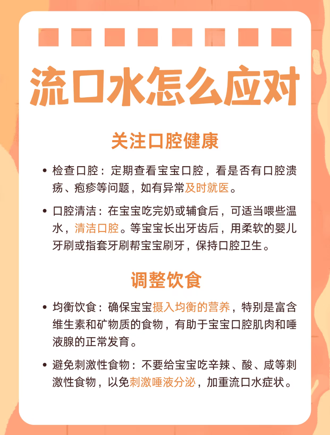 同时,我们可以从内而外帮助宝宝。日常饮食注意营养均衡,为他身体发育提供充足“燃料”。避免给他尝试那些酸酸的、辣辣的刺激性味道,这些可能会让口水分泌得更欢。每次吃完奶或辅食,喂一两勺温开水,帮他简单清洁口腔。等到小牙冒出头,就需要用柔软的婴儿牙刷或指套牙刷,温柔地帮他刷牙,从小守护口腔健康。