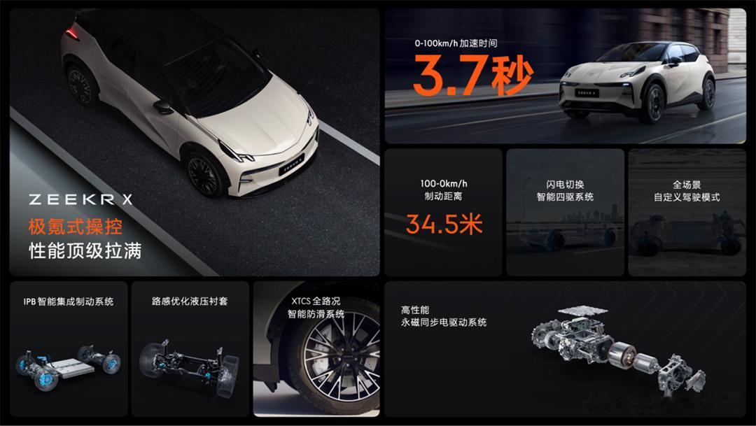 极氪这个品牌一方面有点儿慢,一方面又有点儿快。慢是指到现在它可选的车型也不多,快呢就是它的创意、个性化智能化的突破与变革,确实是挺快的。 今天极氪终于带来了一款紧凑级SUV车型,叫极氪X,尺寸不大,续航也不算特别惊人,最高560公里其实主打的就是一个城市代步通勤。 不过价格在智能化程度比较高的车型中还算比较实惠的(五座后驱18.98w,五座四驱20.98w,四座后驱20.98w),但是跟大众id3比还是显得有点儿贵,当然了,id3的配置肯定也跟他有不小的差距。 设计简单说一下,无框车门比较常见了,但是无框外后视镜确实挺新鲜的,几乎没有什么车用,更新鲜的是他设计的是没有把手的电动门,这比隐藏式把手更向前进了一步,但是这个安全隐患确实要打一个问号,万一出了事故,有没有一个很稳妥的办法保证能打开车门,不知道极氪的工程师们有没有做好准备。 而且更大胆的是,人家都是双多媒体屏,三联屏,极氪首先给车内屏幕来一个滑动屏,有意思,这还没完,他还在B柱上弄了一个交互系统,又是屏幕又是摄像头,在这块儿通过面部识别就可以开锁落锁,看起来是挺花哨的,只能说希望不是一个鸡肋的存在吧。 他的冰箱也很有诚意,跟某个奶爸车不一样,那个只是保鲜保冷,但是极氪X的冰箱是真的冰箱,最低到零下15度,最高到50度,车内实现冰淇淋自由也是没问题的,冻肉也没问题。 确实这车有意思的地方太多了,我真有一种惊喜又惊讶的感觉,说了这么多还是没说完,大家感兴趣可以去详细的了解一下。 这种科技感,这种大胆的创新,确实又给那些合资品牌造成了巨大的压力,估计他们的领导今天晚上又该睡不着觉了。不管是大众的id3还是奥迪的Q2 e-tron,极氪x的科技感都是妥妥超越的。传统车企的老大们,确实也要好好想想了。