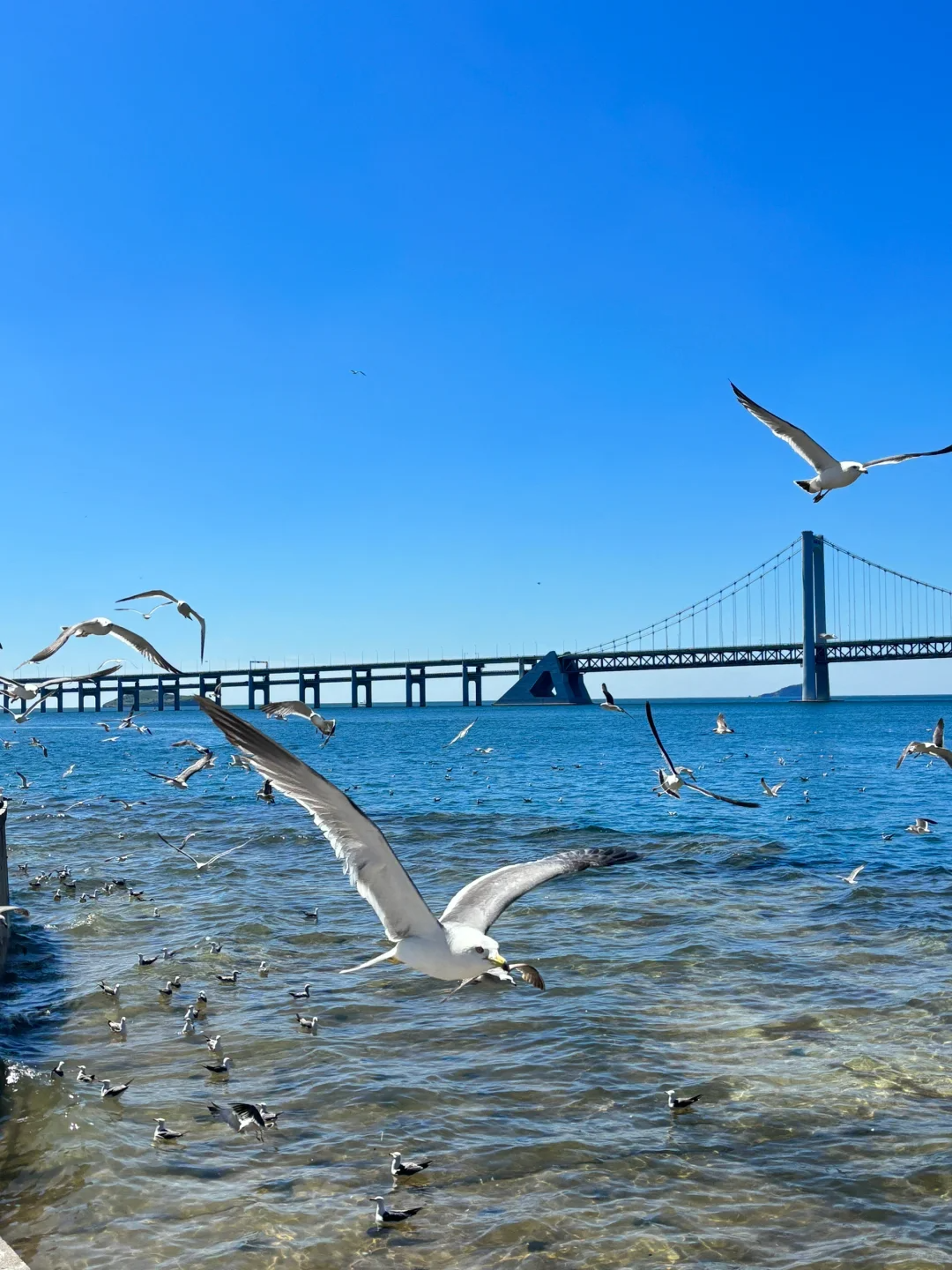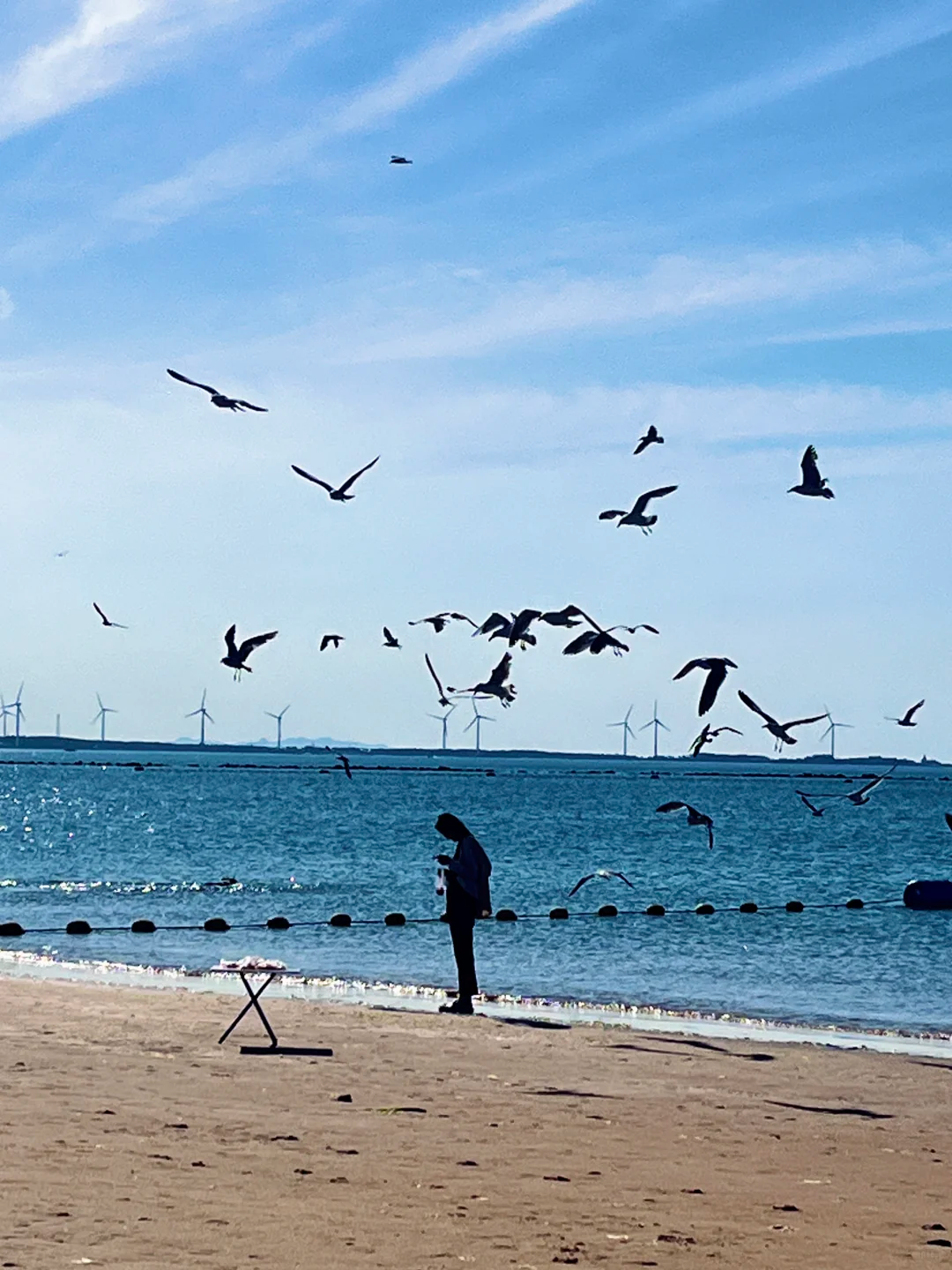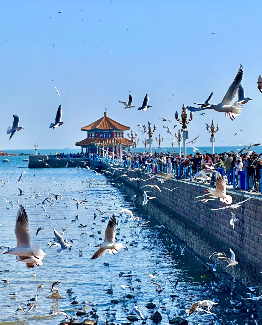 栈桥上的海鸥翩跹起舞在为每一位过客指引方向。
