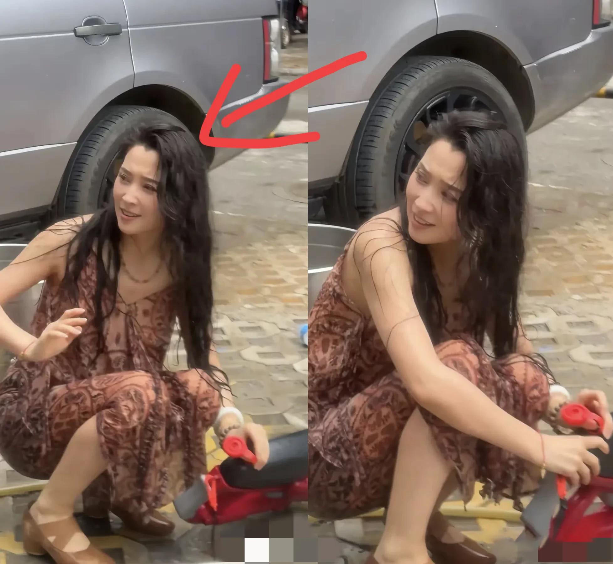 她不时被水溅到,却毫不在意,反而开心地大笑。有一次,一盆水直接浇在她头上,她先是愣了一下,然后甩了甩头发上的水珠,接着又投入战斗。她的妆容被水冲得有些花了,可她完全不介意,反而更显得真实自然。