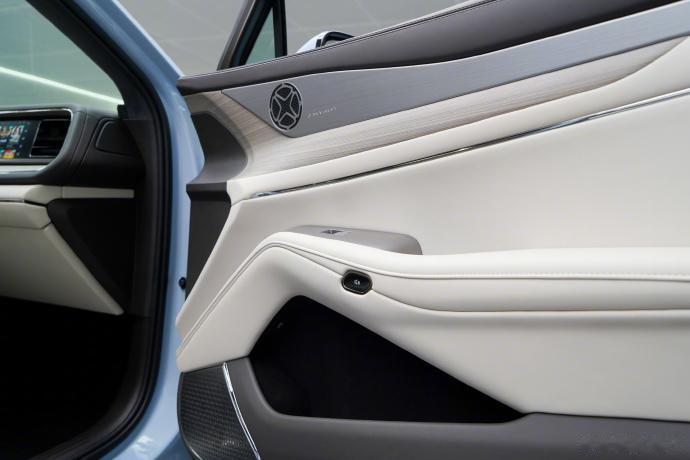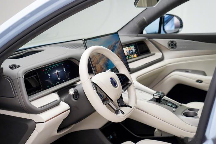 腾势 N7 内饰图来了! 整车总共有 6 块屏幕,并非采用骁龙 8155 方案,支持多屏 share 信息互传互享。中控使用全新 UI 布局,增加了很多图示化的元素,针对主流视频软件、音乐软件进行重新布局,流畅度非常高, 座舱围绕五个维度展开,分别是空间感、观感、听感、触感、嗅感,CTB 电池车身一体化技术,减少了电池对车内空间的挤占。 车内通过很多曲面的布置,以无限延伸的长线条勾勒整个空间,并且前后呼应形成环绕姿态。例如:悬浮仪表台、一体化主仪表台、环抱副仪表台、 镂空方向盘、人体工学座椅、 无边全景天幕,全部都在呼应无边界、连贯整体的设计理念。 座舱材质运用了多材质组合搭配,NAPPA 真皮座椅面料、亚光真铝、隐形真木触控面板、原生木皮激光镭雕、水晶档把。 上海车展上能见到实车,到时候体验下它的音质如何,不说差点忘了,它还首发搭载比亚迪云辇系统,有机会实车也要感受驾驶感受。