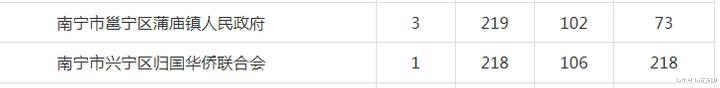 兴宁区委组织部报录比33:1;兴宁区归国华侨联合会:218:1;交通运输局166:1;统计局160:1。