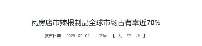 数据层面,海关信息显示,2024年大连长兴岛海关监管出口辣根制品7676吨,货值2.05亿元人民币,瓦房店的相关产品卖到60多个国家和地区。