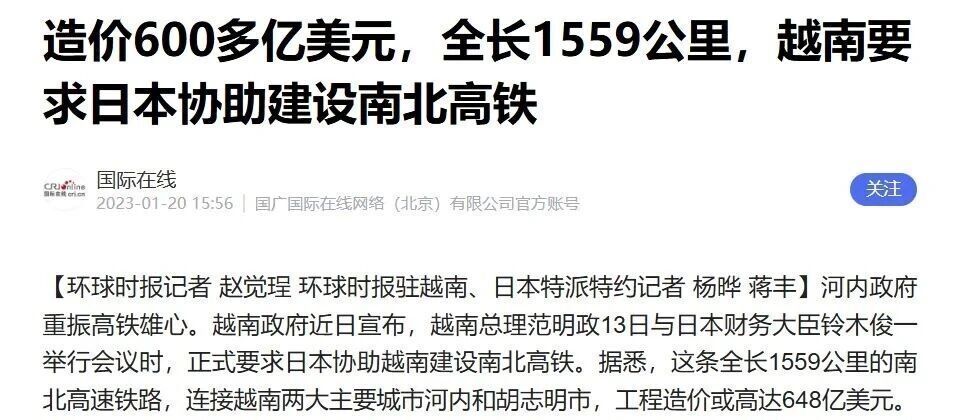 2010年,日本报价500多亿美元,要知道采用咱们的技术,能比这便宜一半!而越南当年的财政收入才200多亿美元。