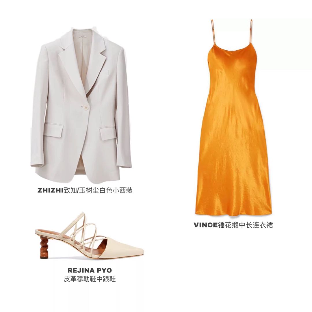 当搭配中一部分是满当当的女人味时就要用笔挺的裁剪和设计感去平衡。有西装去衬出平直的肩线,鞋子去营造一抹个性,方觉鲜艳的橙色格外顺眼。