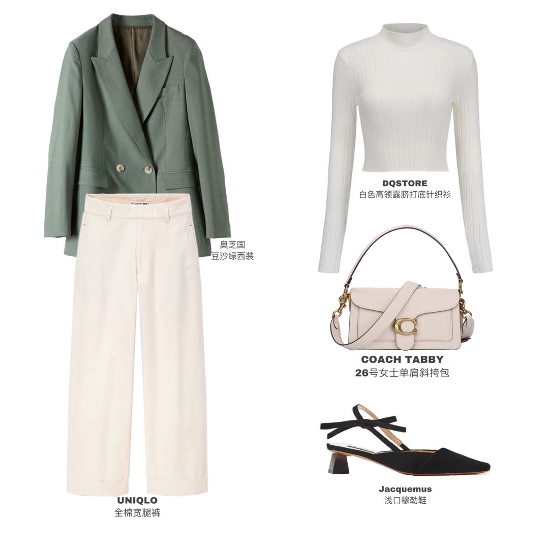 内衬小露肌肤,而外套是淡雅温柔的绿,鞋子仍是法式风情,腋下包是为了增添女人味。法式穿搭的微妙在于简约却风情,无需多余缀饰,不失一分性感,不多一分风俗。