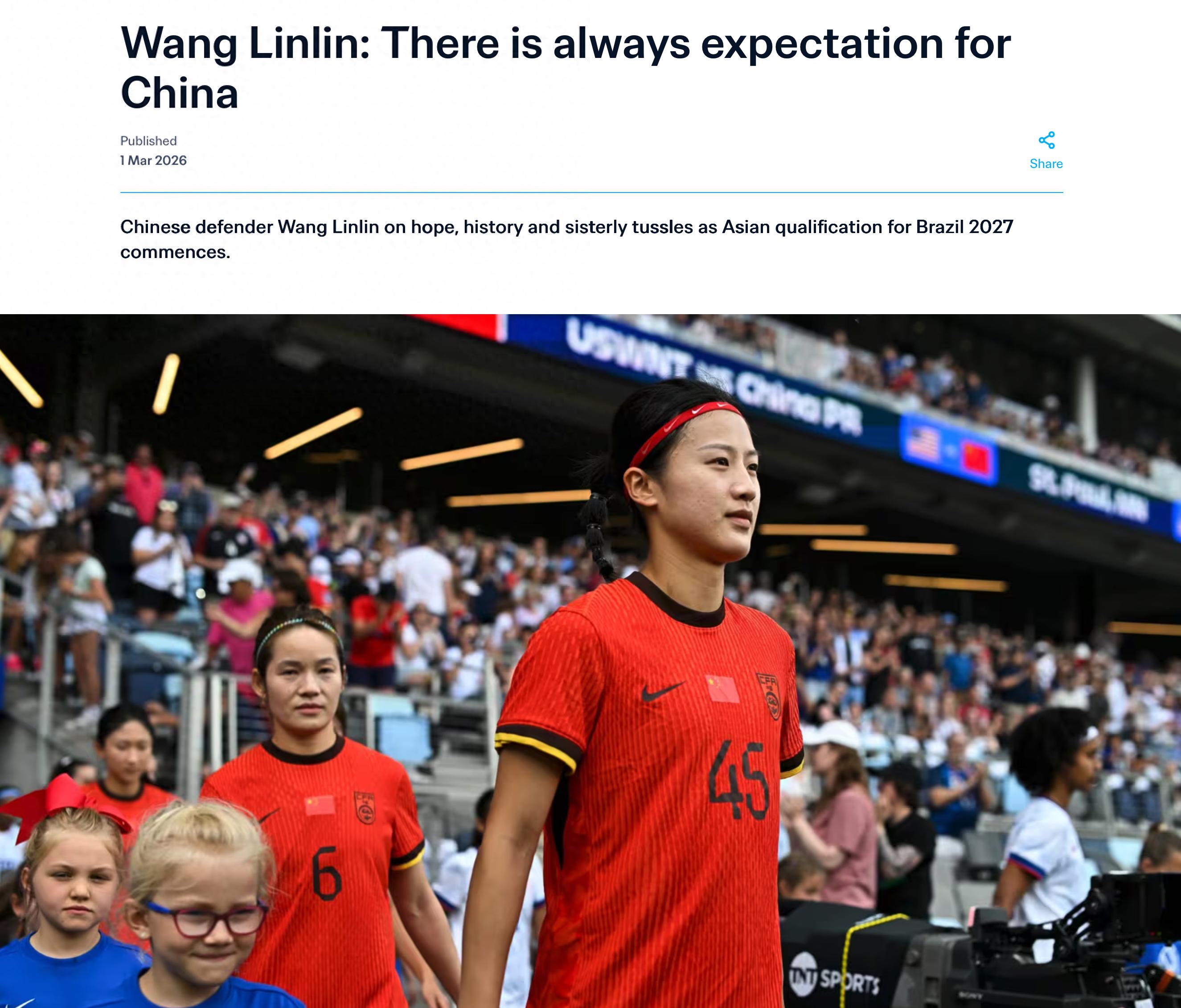 在接受国际足联采访时,中国25岁的年轻后卫汪琳琳谈道:“我认为亚洲杯的水平非常高,你可以看到很多亚洲球队都取得了巨大的进步,所以从亚洲区出线绝非易事,因为各队水平接近,竞争激烈。对我们来说,这是一个挑战,也是一种动力。我们想要不断提高,一步步展现我们的实力。我相信这支球队有能力晋级世界杯,并再次成为顶级球队。对我们球员来说,这既是一种责任,也是一种荣誉。”