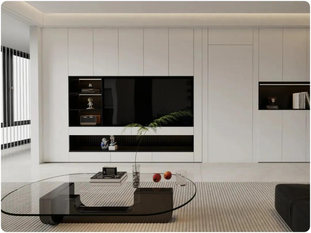 ▲油漆隐形门电视背景墙的设计,有效地解决空间的缺陷,与墙体相融合,使得空间的质感更佳,更加通透。