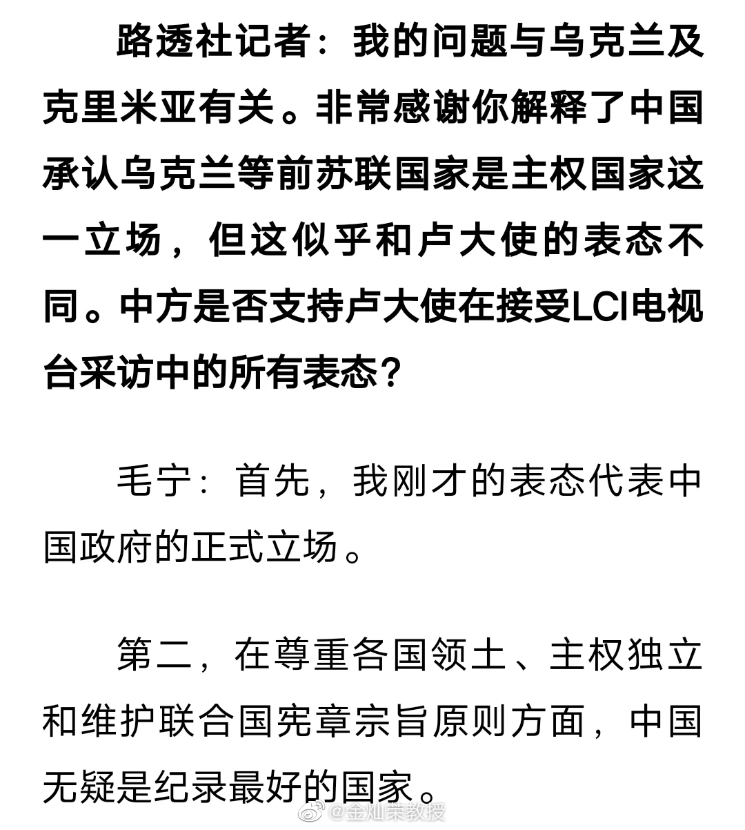 陌上花开 3 2023-04-25 10:10 我承认你是主权国家,但你们领土边界问题你们自己对话协商去。国际法并没有明确划定你们这些加盟国的领土边界。而波茨坦公告与联合国决议明确规定台湾属于中国,中华人民共和国是中国的唯一合法政府。