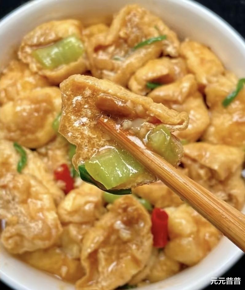 看,金黄软糯的豆泡挂着晶莹的酱汁,配上鲜亮的辣椒,是不是光看着就忍不住咽口水?咬下去,豆泡在嘴里迸发出滚烫鲜美的汁水,外层裹着咸甜交织的浓郁酱香,内里却还保留着豆制品独特的柔软。