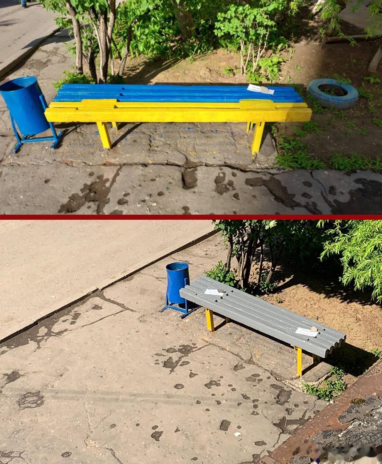 伏尔加河商店的长凳因刷成蓝黄色而遭到举报,称发现有“敌国”的颜色存在,商店得到警方传讯后知错就改,马上漆成了灰色。战争把人们搞得神经兮兮,一不小心就可能被别人发现了错误。