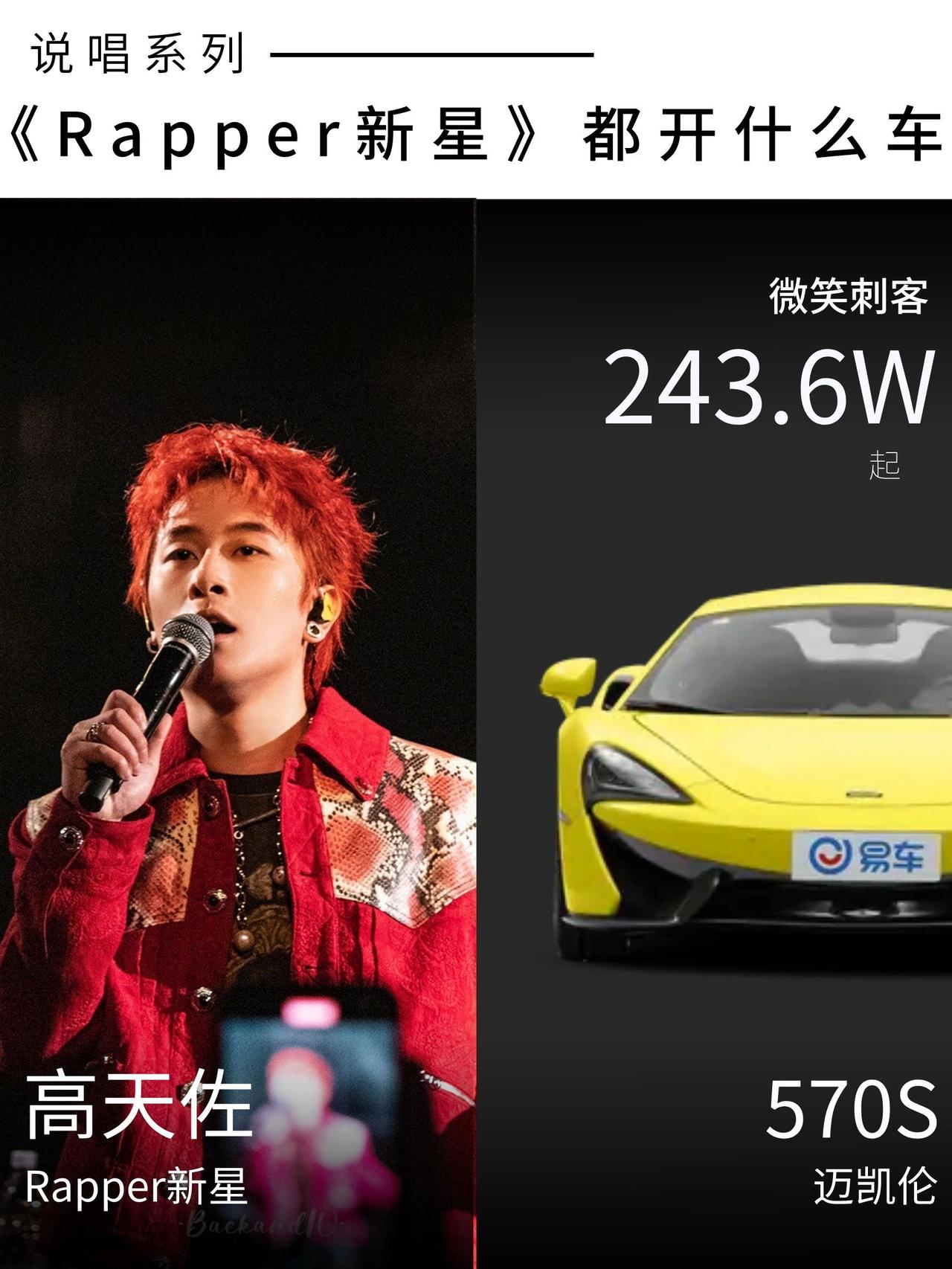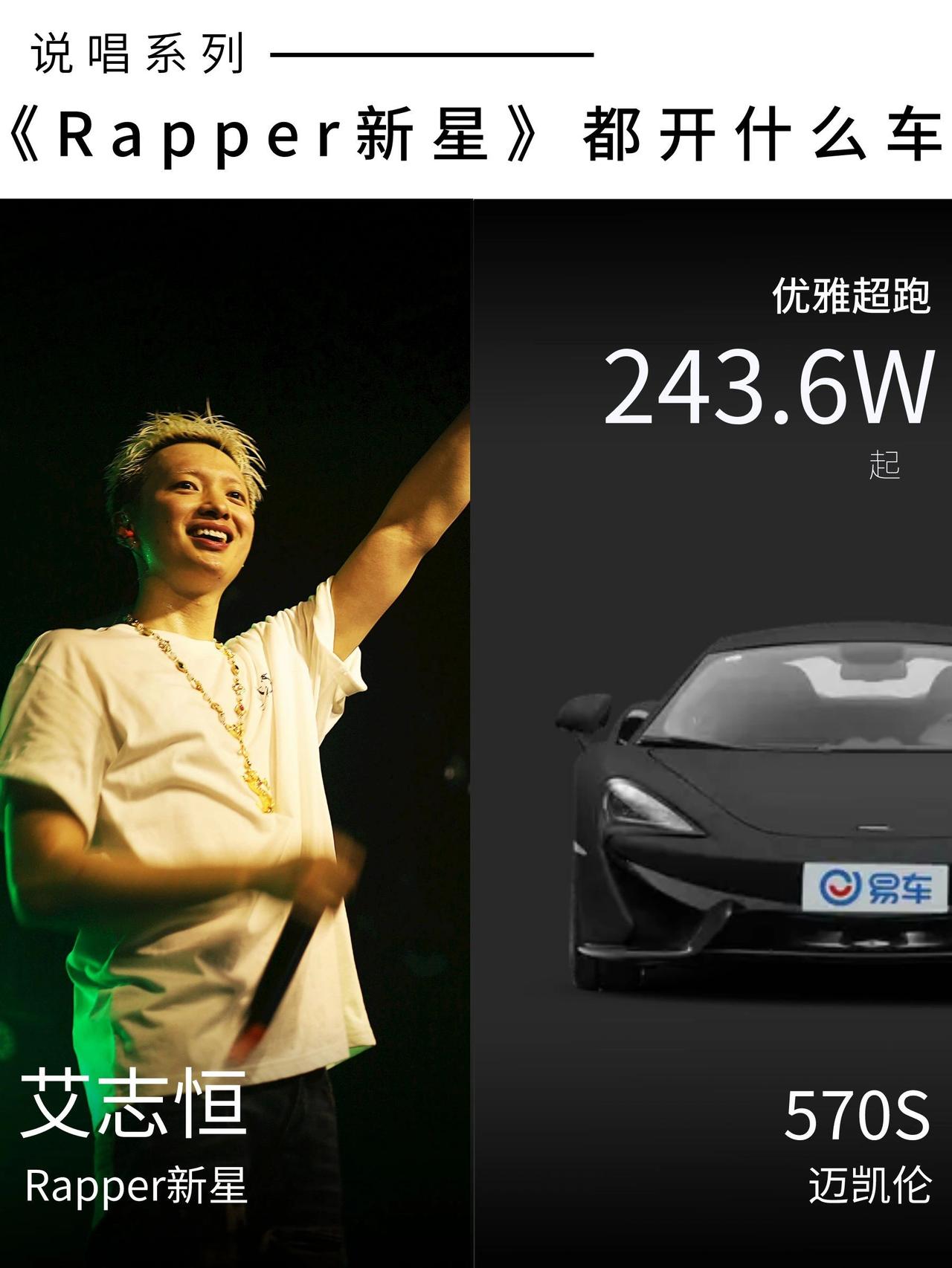 《Rapper新星》他们都开什么车呢? 车型:奔驰AMG GT 人物:王琳凯 imp小鬼是来自中国福建的说唱新星,17年的中国有嘻哈选手,获得全国70强,从而正式进入演艺圈,最近他的一句“泰酷辣”火爆全网,他的座驾是一辆奔驰的旗舰轿跑车型,四门的AMG GT。 车型:迈凯伦570S 人物:艾志恒 Asen是从小镇走出来的说唱传奇人物,单曲《DAY1》点燃了说唱圈,这首歌Asen把最近的想法和我的经历都放进了歌词,听过这首歌的人肯定都能理解,他的座驾是一辆英国的超跑品牌迈凯伦的570S。 车型:道奇挑战者 人物:那奇沃夫 硬核,技术流,已经成为新疆HipHop的代名词。这位来自西域的rapper,每首单曲表现出了过硬的技巧,让大家知道新疆不仅有美丽的异域风情,还是中文说唱的中坚力量。他的座驾是硬派的美式车,道奇挑战者。 车型:迈凯伦570S 人物:高天佐 高天佐是2020 年《说唱听我的》节目的全国亚军。来自南京FreeOut厂牌的高天佐TroubleZ当时因为网传的某些事件,引发了巨大关注。他的座驾亦是和Asen同款的迈凯伦570S。