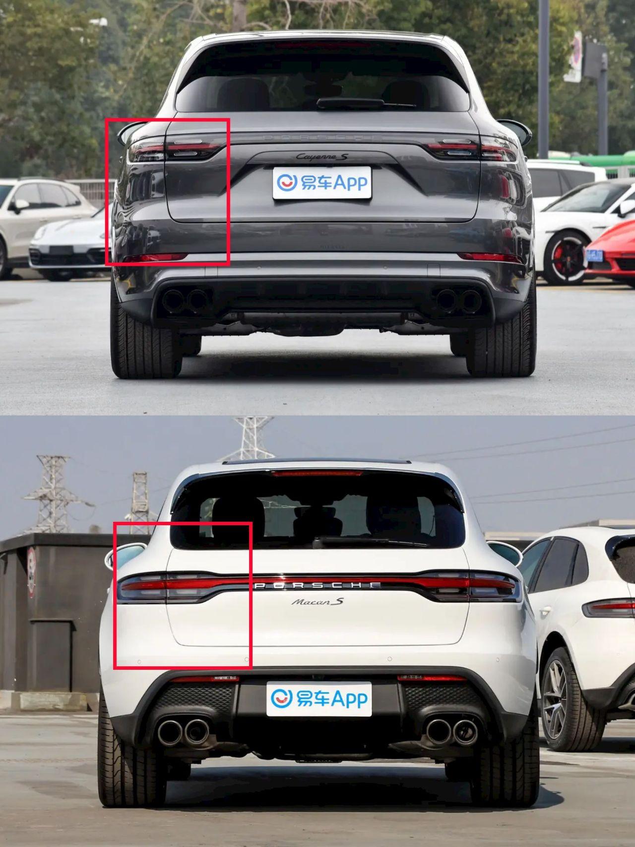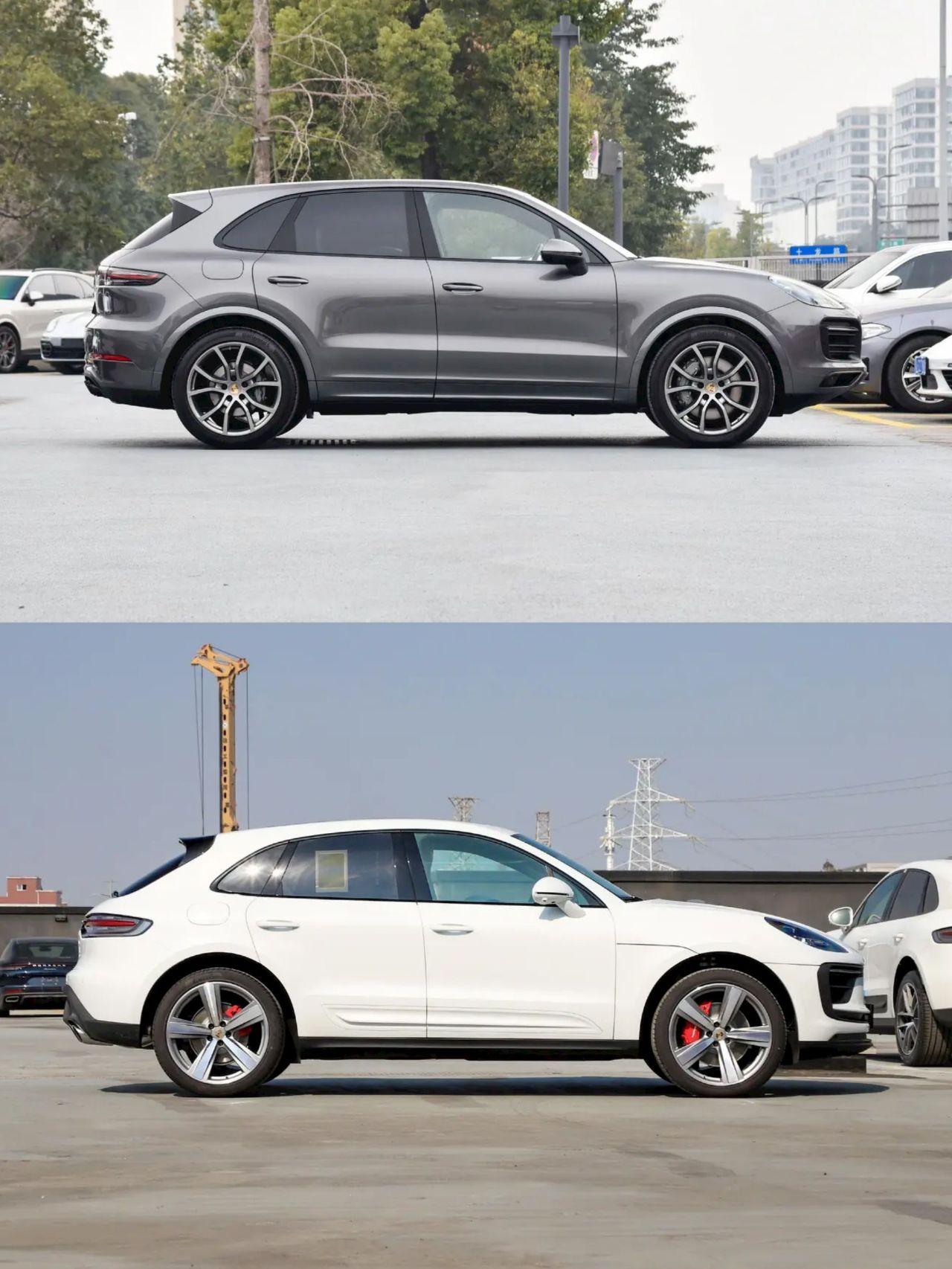 保时捷90.3w的卡宴和57.3w的Macan怎么区分? 说到保时捷,我第一印象就想起了两款长得很像的SUV—卡宴和Macan,虽然他们两者看上去有一些相似,但细看的话还是会有区别。 ① 外观设计的不同 卡宴保时捷全新卡宴头部装配了大尺寸贯穿式多横幅进气格栅,与Taycan车型保持高度相似。 Macan车身侧面线条更加简洁,车窗下沿呈波浪形,增加了动态感,而且显得更加细长。 ② 内饰风格的不同 卡宴在中控台的下方采用了类似于台阶式的面板装饰,中控台的两侧采用了多边形的轮廓,很显豪华。 Macan内饰采用了黑色和红色的撞色搭配,以及碳纤维和铝合金等材质的装饰,营造出一种动感和质感的氛围。 ③ 车身尺寸的不同 卡宴的车身长宽高为4926mm*1983mm*1696mm,轴距为2895mm,车身更长。 Macan的车身长宽高为4697mm*1926mm*1624mm,轴距为2807mm。 总体上来说,如果追求空间、舒适和豪华感,可以选择卡宴;如果追求灵活、运动和个性感,可以选择Macan。