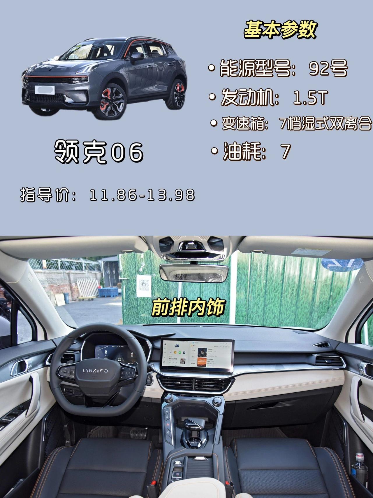 15万左右配置高到离谱的紧凑型SUV 领克06 这个车是国产里面相对来说比较好的了。吉利的背书,沃尔沃的技术。绝对是不会太亏的。外观虽然一般,但是内饰的布局和舒适度那是不一般的。采用啦真皮的皮革。多媒体的中控大屏科技感也是很满的。智能化的功能也很多。我们就不一一列举了。油耗也不会太高。八个油左右吧。完全可以入手的一台车。 广汽传祺影酷 影酷的颜值和配置两个都是很在线的,外观是的采用机甲的风格,特别吸引人眼球很拉风,回头率很高的。配置也不低,十万左右的车,能够拥有二三十万的配置,例如,并线辅助,车道偏离预警,360度全景影像。全速自适应巡航。自动泊车,遥控泊车,等都有。是不是很全面。油耗在八个油左右。也不是很高。很适合小姐姐开的一台车。 丰田锐放 选择这台车呢。也不会让你失望的。毕竟合资车的品质在这里放着呢。不会太拉垮。外观也是运动风格的。没啥说的。内饰方面说实在的,也是真的一般般这个价位的合资车型。一般都比较的简陋。好在这车实用,耐开,还保值。想省心就选它。保养也省心。 比亚迪元plus 这是唯一一台电车。颜值还可以。同级里算是比较好看的了。整车的表现都很智能。一句话就可以把事情给办了,你说好不好呢,简直不要太方便了。电池一周冲一次电就可以。基本可以满足上下班的代步需求了。 这几款车的空间都挺大的。想要配置高的就选择领克06和影酷。配置能玩到飞起。想要省心的就选择丰田的。稳定可靠。比亚迪城市代步上下班完全可以的。