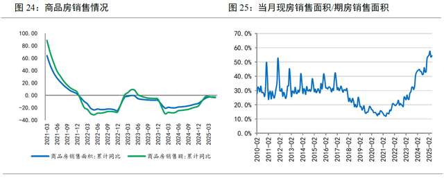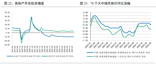 去年一揽子增量政策实施以来,房地产市场止跌回稳取得积极成效。今年一季度,新建商品房销售额累计同比-2.1%,房地产开发投资累计同比-9.9%,较2024年全年的-17.1%和-10.6%收窄,多个核心城市出现“小阳春”行情。但4月之后,随着中美关税战升温,市场情绪受到影响,销售端、投资端同步下行。1-5月销售额累计同比降幅扩大至-3.8%,房地产开发投资降幅扩大至-10.7%。