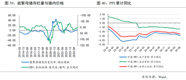 一是食品价格稳中有降。猪肉方面,根据2024年能繁母猪存栏量先降后升推断,今年下半年生猪供应量会逐步增加。由于出栏量稳中有增、宰后均重维持高位,市场供应充足,而居民消费增量有限,供需博弈下价格难有明显回升。其他食品方面,鲜果、鲜菜等价格在季节性因素影响下,或阶段性波动,但由于近年来我国农业生产保持稳定,整体变化幅度有限。