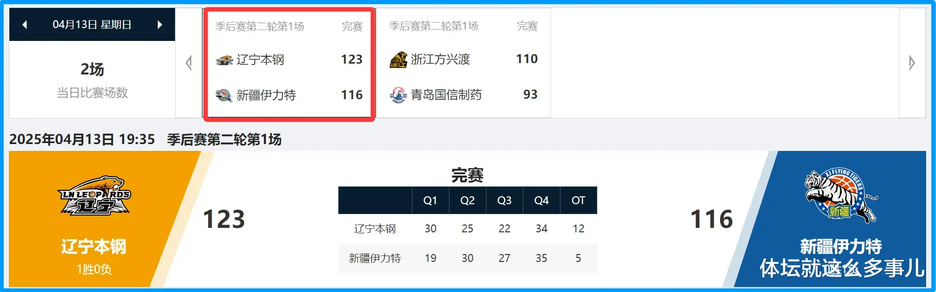 北京时间4月13日晚19:35,CBA季后赛第二轮第1场比赛中,辽宁男篮对阵新疆男篮,最终,辽宁男篮加时123-116险胜新疆,杨鸣回应,刘炜发声,央视直播。