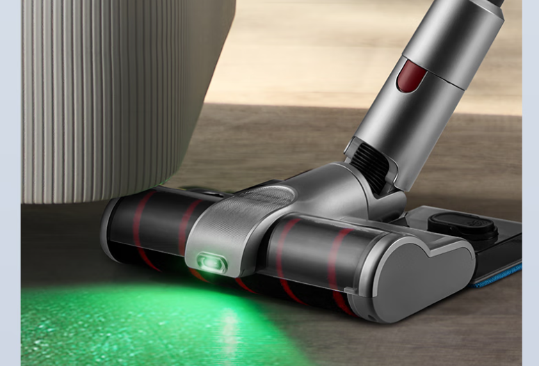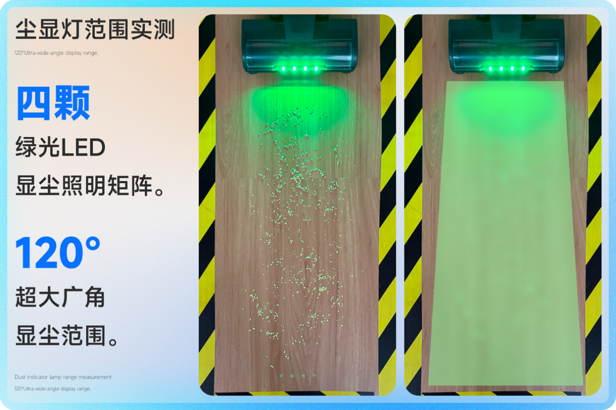 【用户体验】:采用了1.5kg的轻量化机身和人体工学设计,配合120°广角绿光显尘与宠物专用刷头等多种刷头,结合主刷真实续航高达40分钟,可覆盖地板、沙发、床铺等多种复杂清洁区域,适配日常家庭的各种复杂需求。