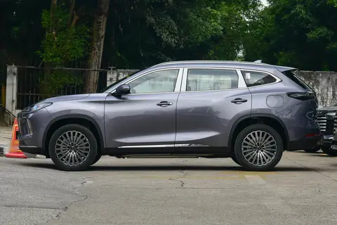 车身侧面的线条流畅舒展,从车头一直延伸到车尾,营造出修长的视觉效果。车窗周围采用了镀铬饰条点缀,提升了一定的精致感,车顶配备了行李架,增加了实用性。车身尺寸方面,作为中型 SUV,它的长宽高比例协调,不会显得过于臃肿,日常停车也比较方便。轮毂采用了多辐式设计,造型时尚,搭配的轮胎抓地力不错,能应对多种路况。