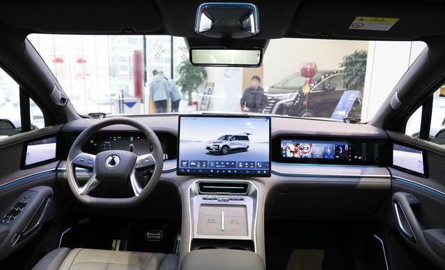最后说说车里最让人直观感受到的科技氛围。跟问界M9、理想L9一样,腾势N9也装上了大块头的中控屏和副驾娱乐屏。如果你选的是高配版,那还有块17.3英寸的后排大屏,看着就挺有科技范儿。不过得提一句,腾势N9的副驾娱乐屏只有13.2英寸,是这三块屏里最小的。这么大的车,配上这么小的屏,确实感觉有点小家子气了。