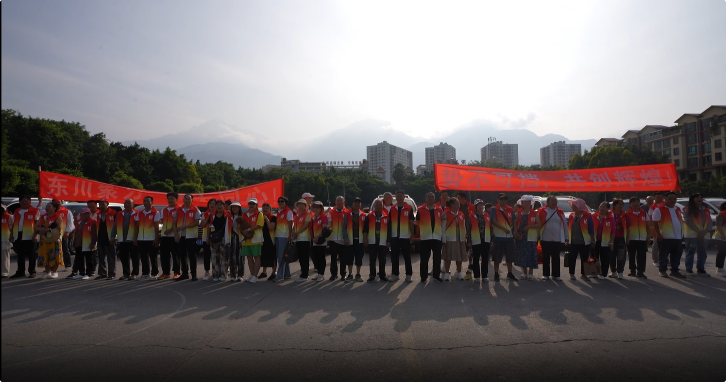 在活动现场,红旗飘扬、人潮涌动,胜天东川团队组织车队列阵出发,拉起横幅“东川聚力,胜天同心”“梦不可挡,共创辉煌”,队伍整齐、精神饱满,成为当地一道靓丽的流动风景线。