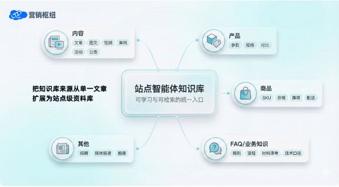 所以升级的第一步不是写更多提示词,而是把知识源从“单一文章库”升级为“站点级业务知识库”。