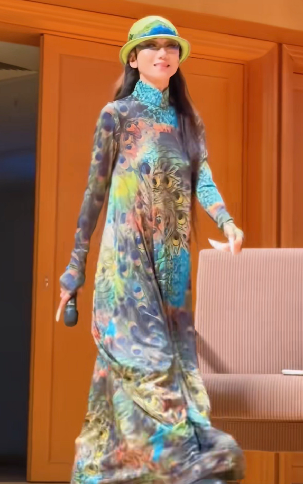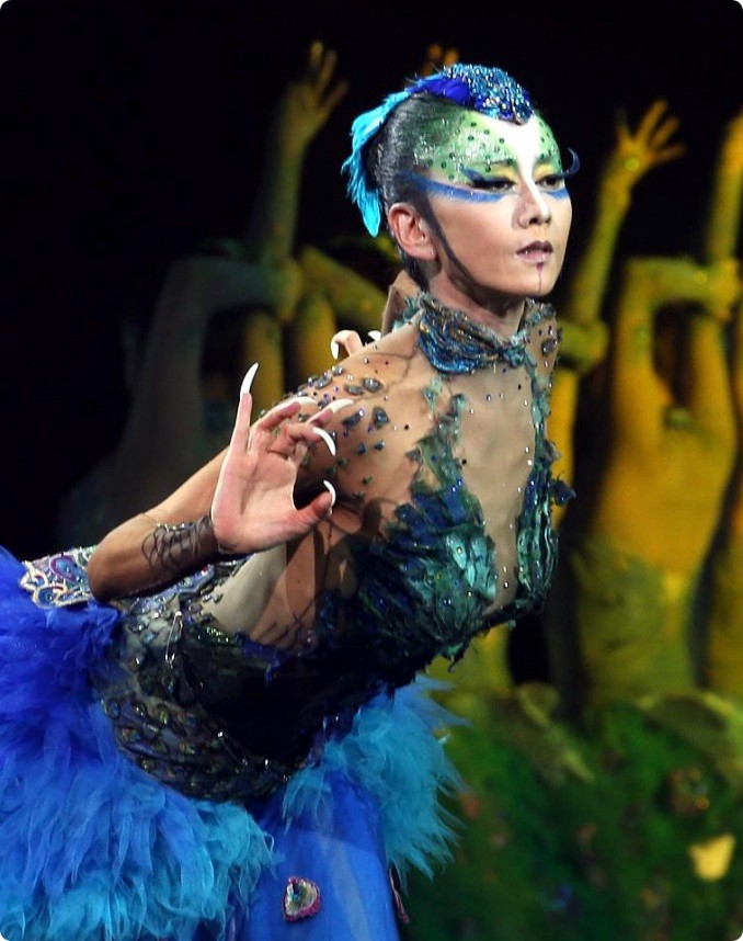 她的舞蹈没有刻意的技巧堆砌,却总能用最自然、最灵动的肢体语言打动人心,模仿孔雀的轻颤、漫步、开屏,每一个动作都惟妙惟肖,仿佛她本身就是一只从林间走出的孔雀在舞台上自由绽放。