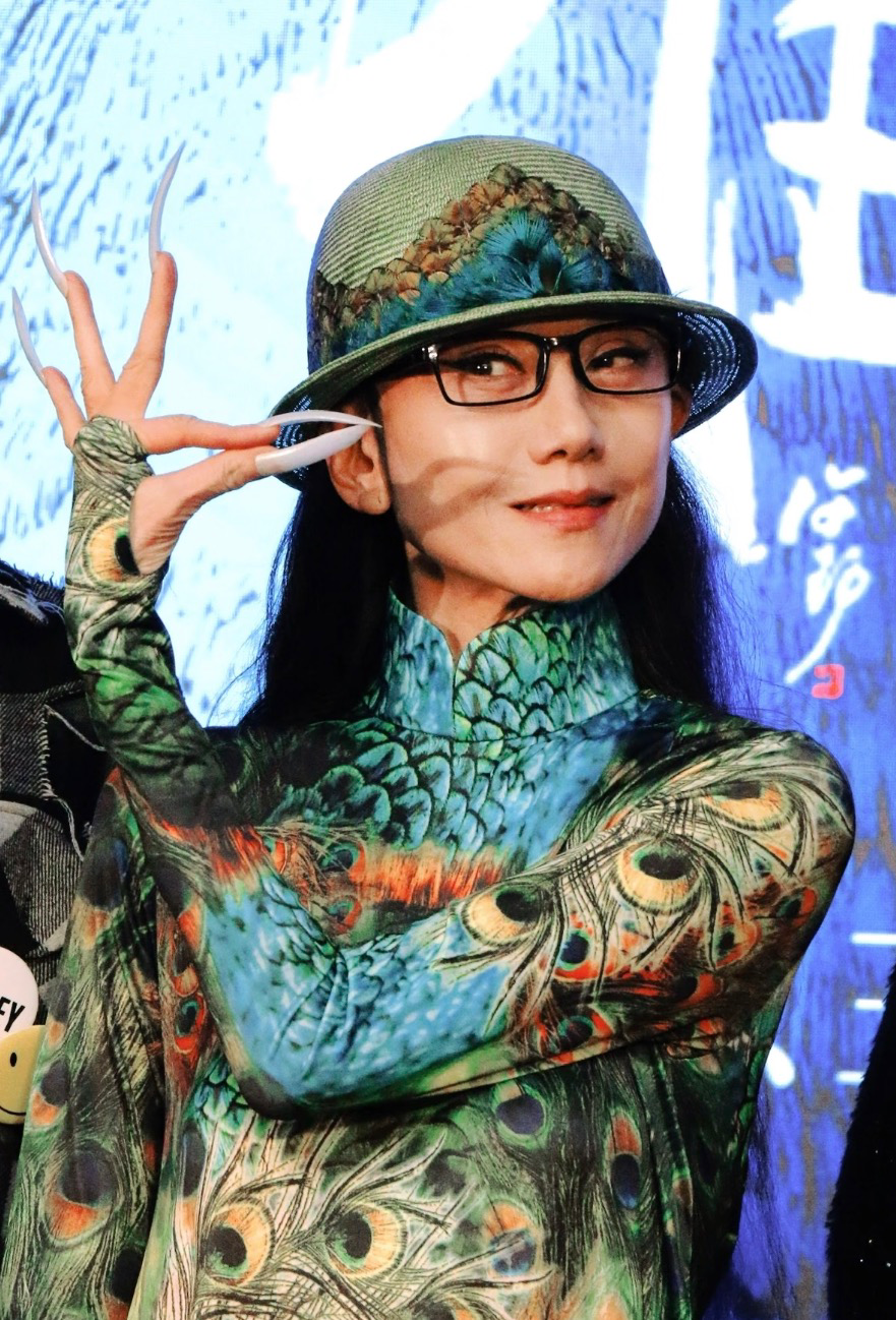 当天她的穿搭依旧是独树一帜的杨丽萍式民族风,却在细节处藏着巧思与雅致。