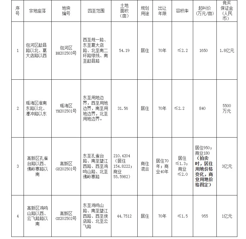 这四宗地块为医疗卫生用地、科研用地以及商业、商务金融用地。