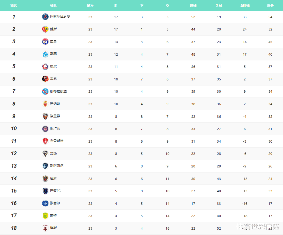 大巴黎3-0击败梅斯,目前积54分领先朗斯2分重回榜首的位置,考虑到双方的底蕴,大巴黎夺冠的可能性还是比较大。