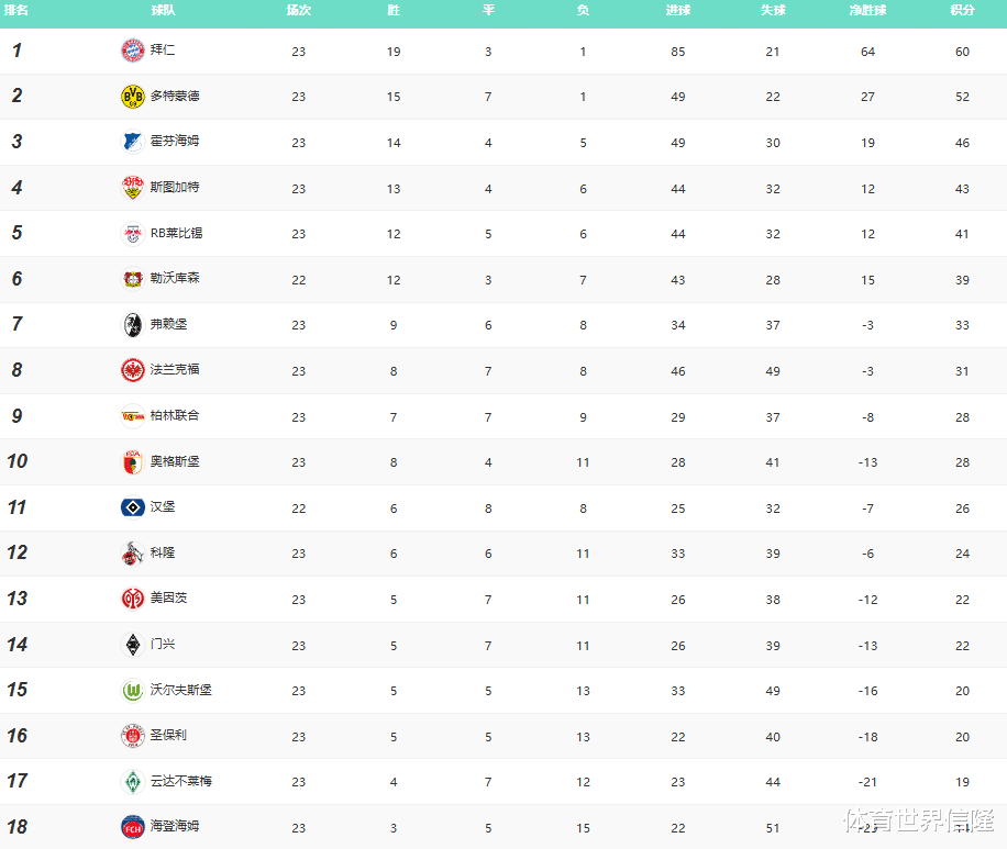 1、德甲:拜仁难以阻挡,他们志在欧冠德甲23轮战罢,目前还剩11轮,拜仁3-2惊险战胜法兰克福,而多特蒙德2-2绝平RB莱比锡,这样拜仁积分来到60分继续领跑德甲,领先第二位的多特蒙德8分。