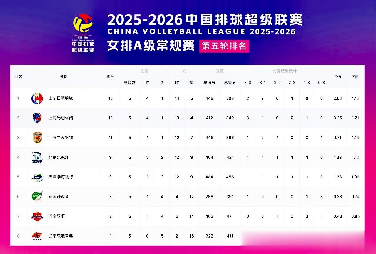2,上海:4胜1负(胜福建、江苏、河南、辽宁,负天津),胜13负4局,积12分。