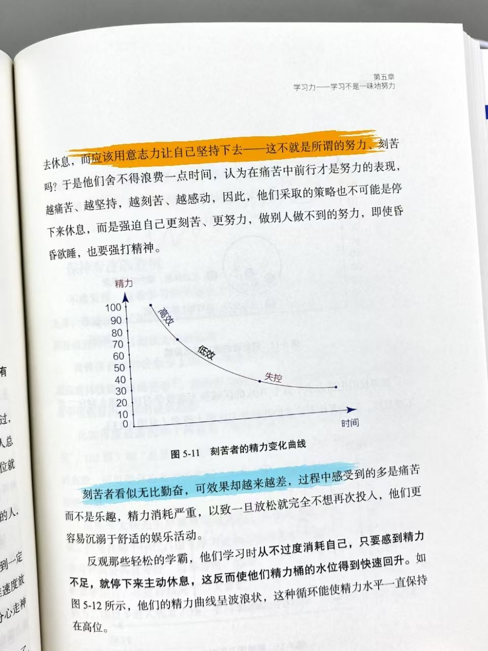 问题就出在这里,那些持续刻苦、争分夺秒、舍不得休息一下的人,他们的精力总量势必呈一条持续下降的曲线。