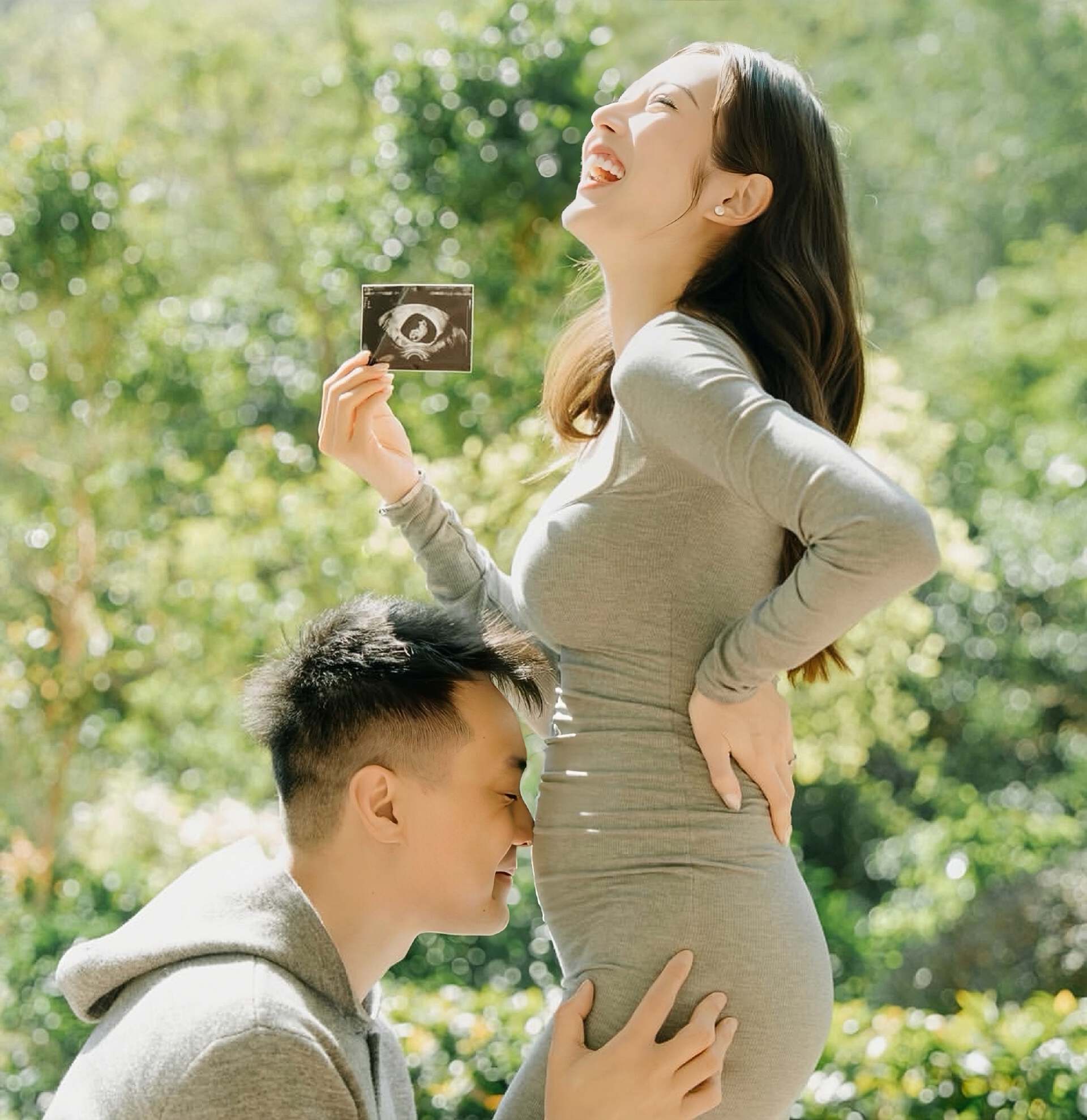 从蔡嘉欣分享的照片可以看到,她现在的孕肚已经比较明显了。据她透露,她的孕期已经过半。