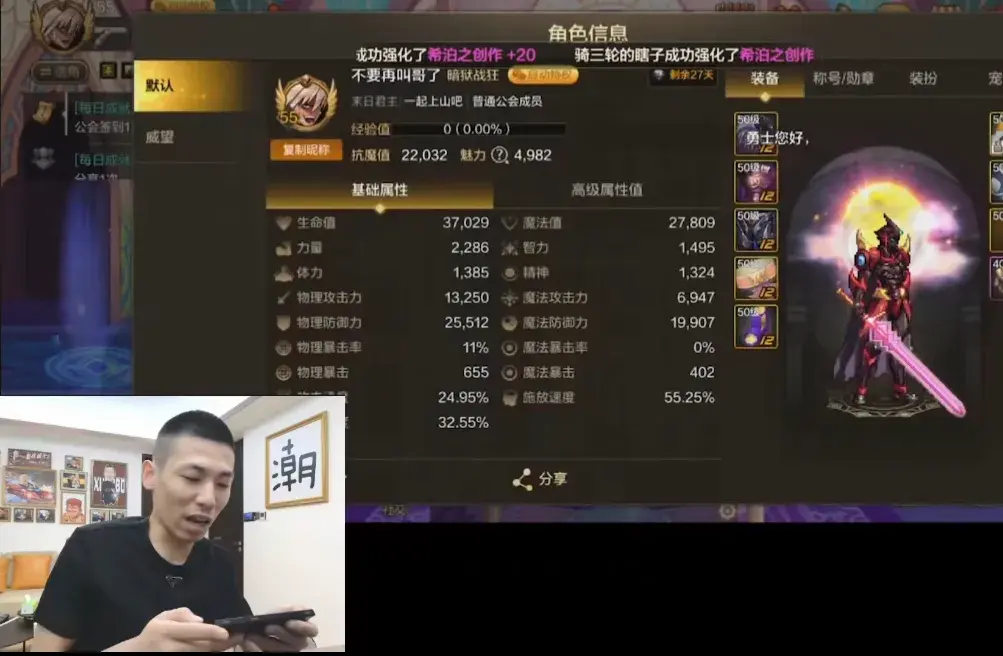 之后宝哥把号主的装备和宠物都狠狠强化升级的一遍,装备都给强化上12,武器子午直接给整到+19,附魔徽章都是土豪级使劲打造,最后还给水友号里留600给水友明天武器上+20,不得不说宝哥人太好了。