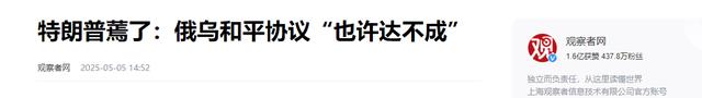 特朗普之前大言不惭的称24小时就可以结束俄乌战争,但是结果呢?三个月了,特朗普上蹿下跳,反反复复折腾,俄乌战争还在打,根本停不下来。