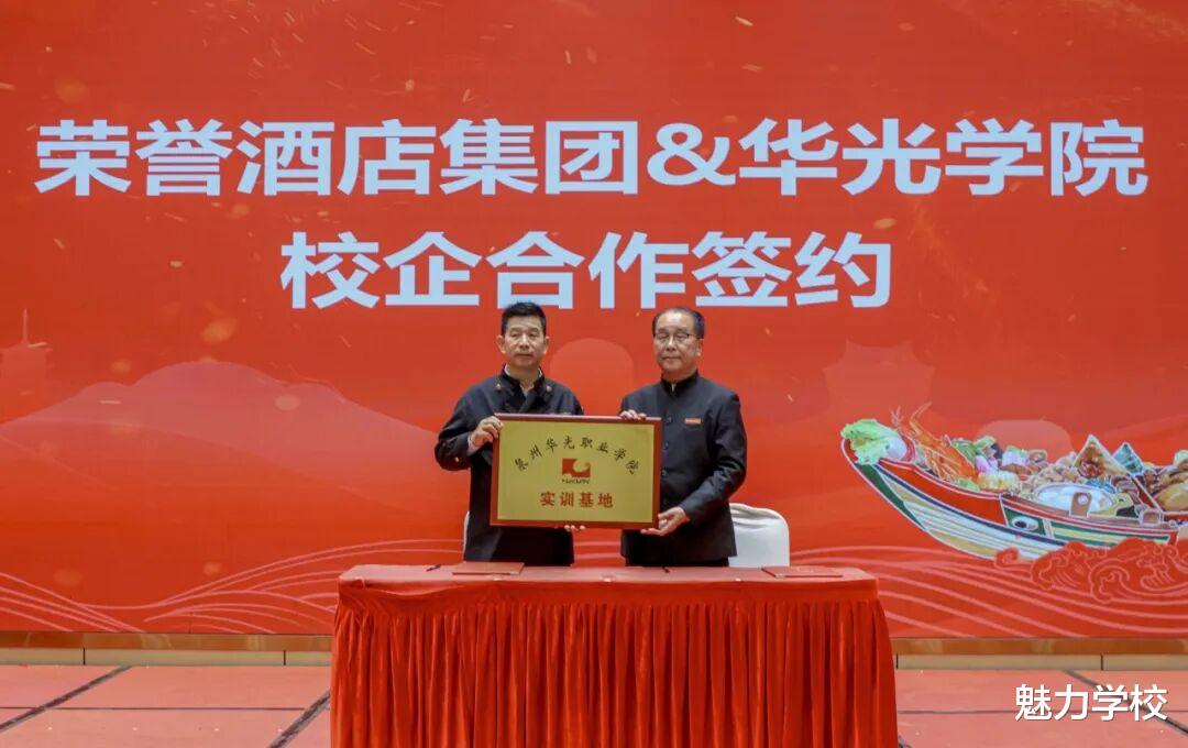 泉州华光职业学院与泉州荣誉酒店集团现场签订校企合作协议,并授予其“校企合作基地”牌匾。