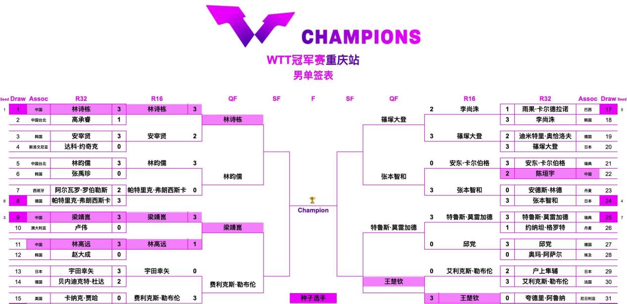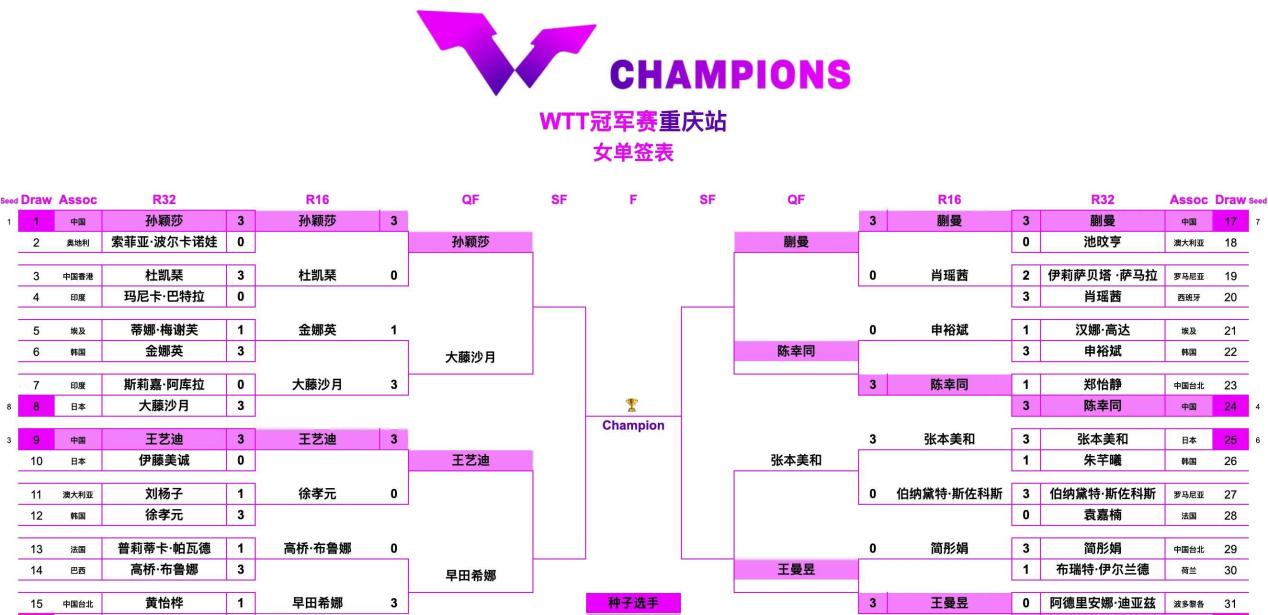其余3位选手则需要与国乒的3人进行激烈的比拼,国乒还将面临来自奥运亚军和新秀的挑战前方阻碍重重“WTT冠军赛1/4决赛的赛程表已揭晓,选手们都在紧锣密鼓地准备接下来的比赛。